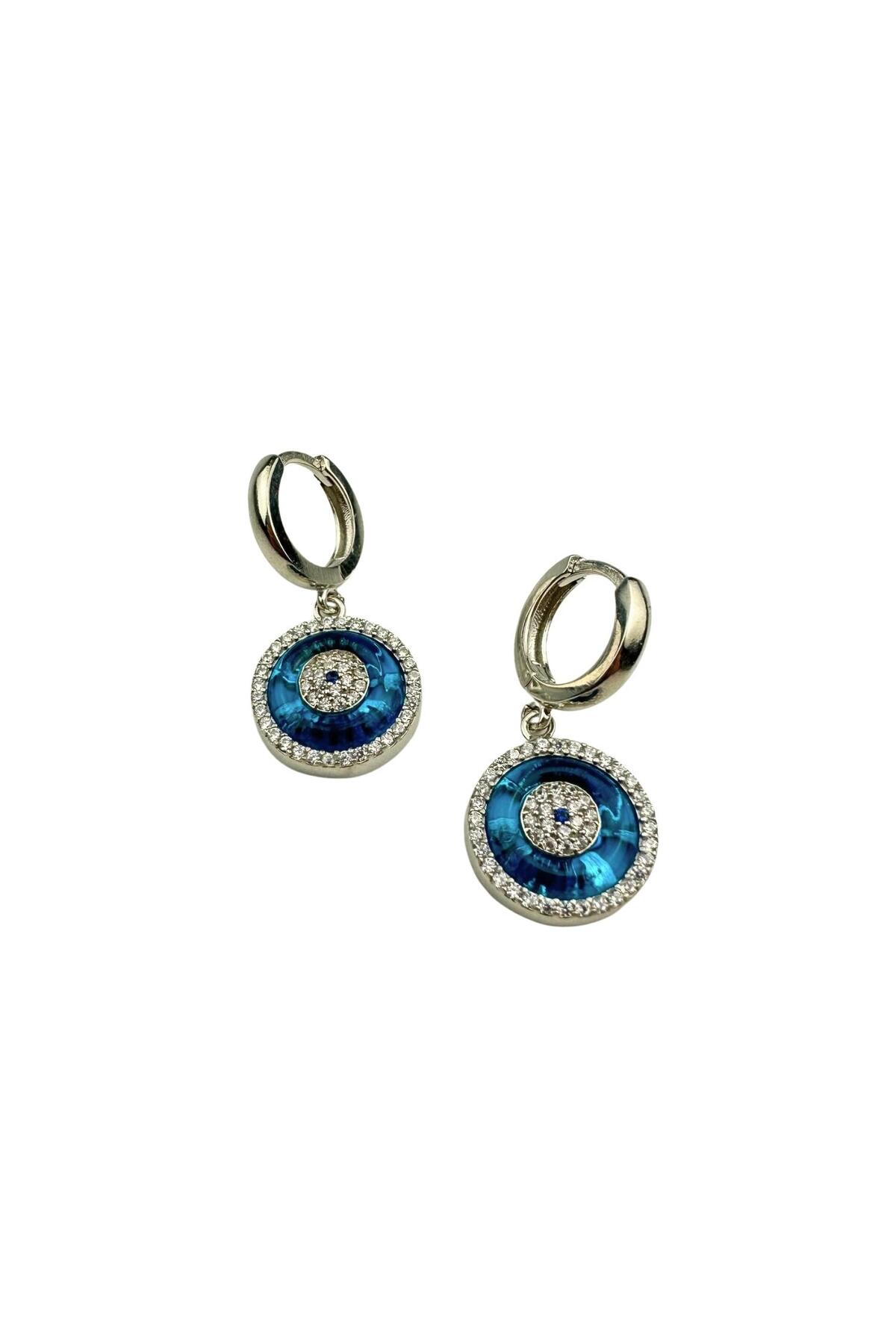 Nazar Boncuklu Taşlı 925 ayar Gümüş Küpe Beyaz Renk Nazar Boncuklu Taşlı 925 ayar Gümüş Küpe Beyaz Renk SSNBKP010TYBYZ Universal