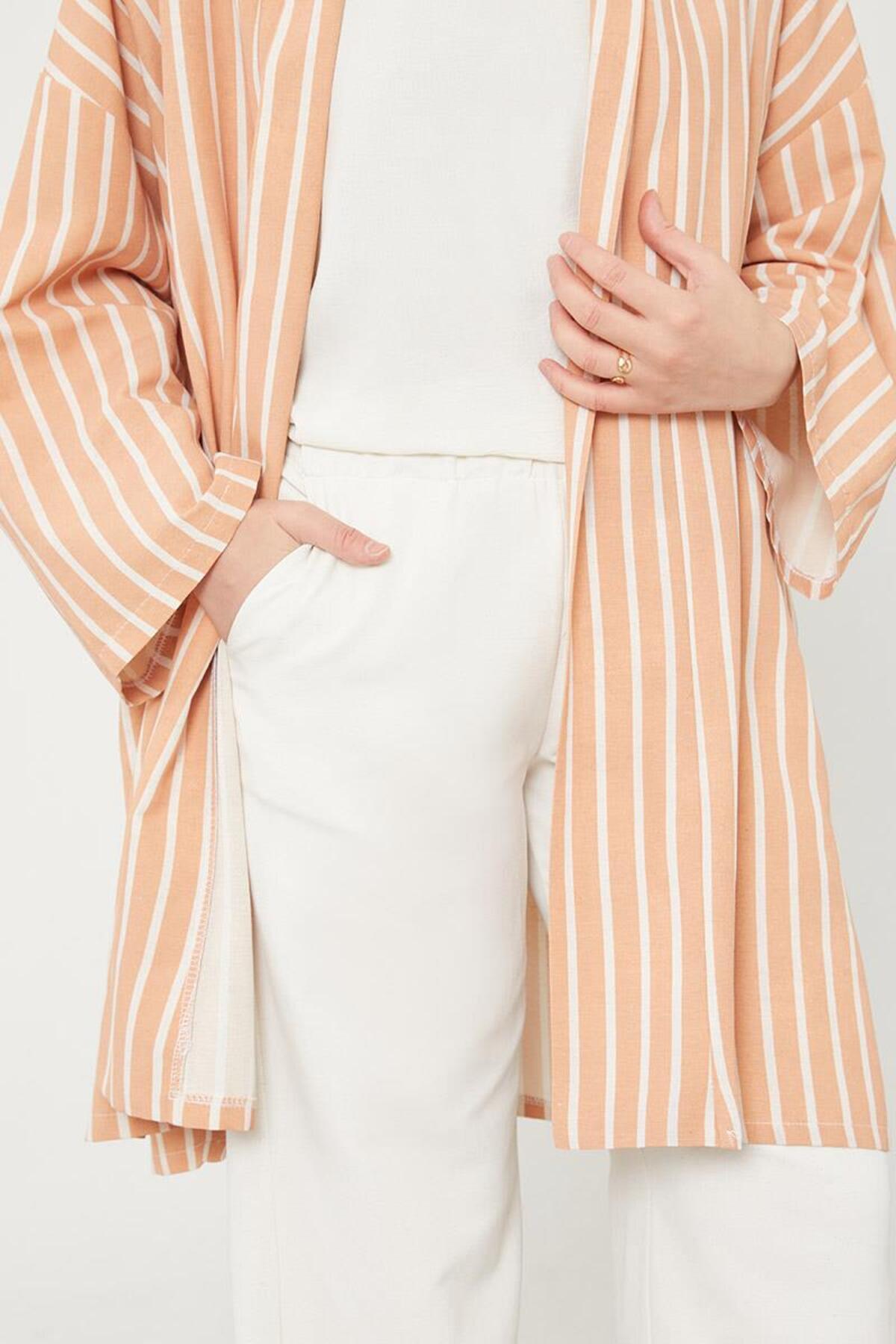 Hardal Çizgili Desen Kimono Takım Hardal Çizgili Desen Kimono Takım 100100 L