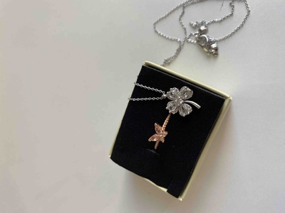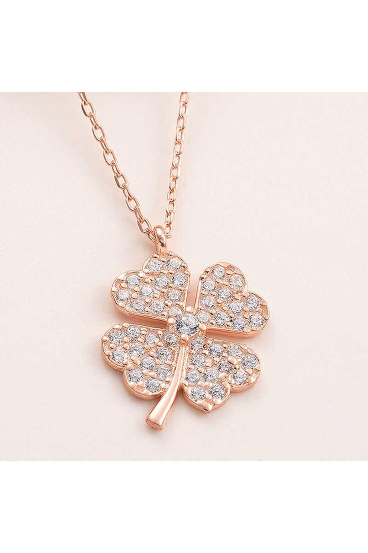 Beyaz Dört Yapraklı Şans Yoncası Gümüş Kaplama Kadın Kolye Beyaz Dört Yapraklı Şans Yoncası Gümüş Kaplama Kadın Kolye KR8 45 cm
