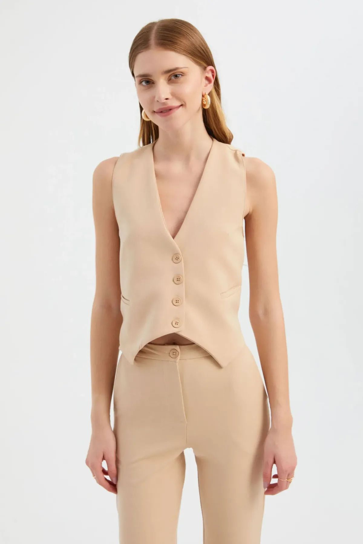 Kadın Camel Düğmeli İp Askılı Yelek MP20153 Kadın Camel Düğmeli İp Askılı Yelek MP20153 XL