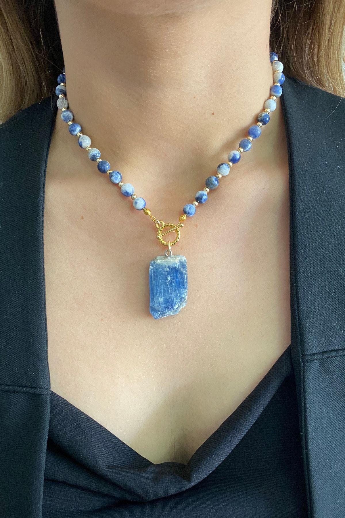 El Yapımı Lapis Lazuli Doğal Taş Sodalit Doğaltaş Uç Altın Aksesuar Özel Tasarım Kadın Kolye El Yapımı Lapis Lazuli Doğal Taş Sodalit Doğaltaş Uç Altın Aksesuar Özel Tasarım Kadın Kolye YLLDT-0094 45 cm