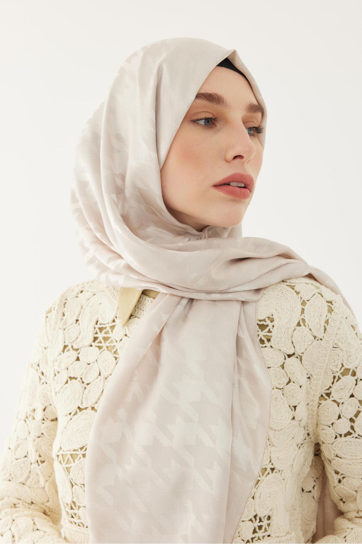 Kazayağı Desen Parlak Jakar Şal - Bej Kazayağı Desen Parlak Jakar Şal - Bej KAZPRLKJKR 75 x 185