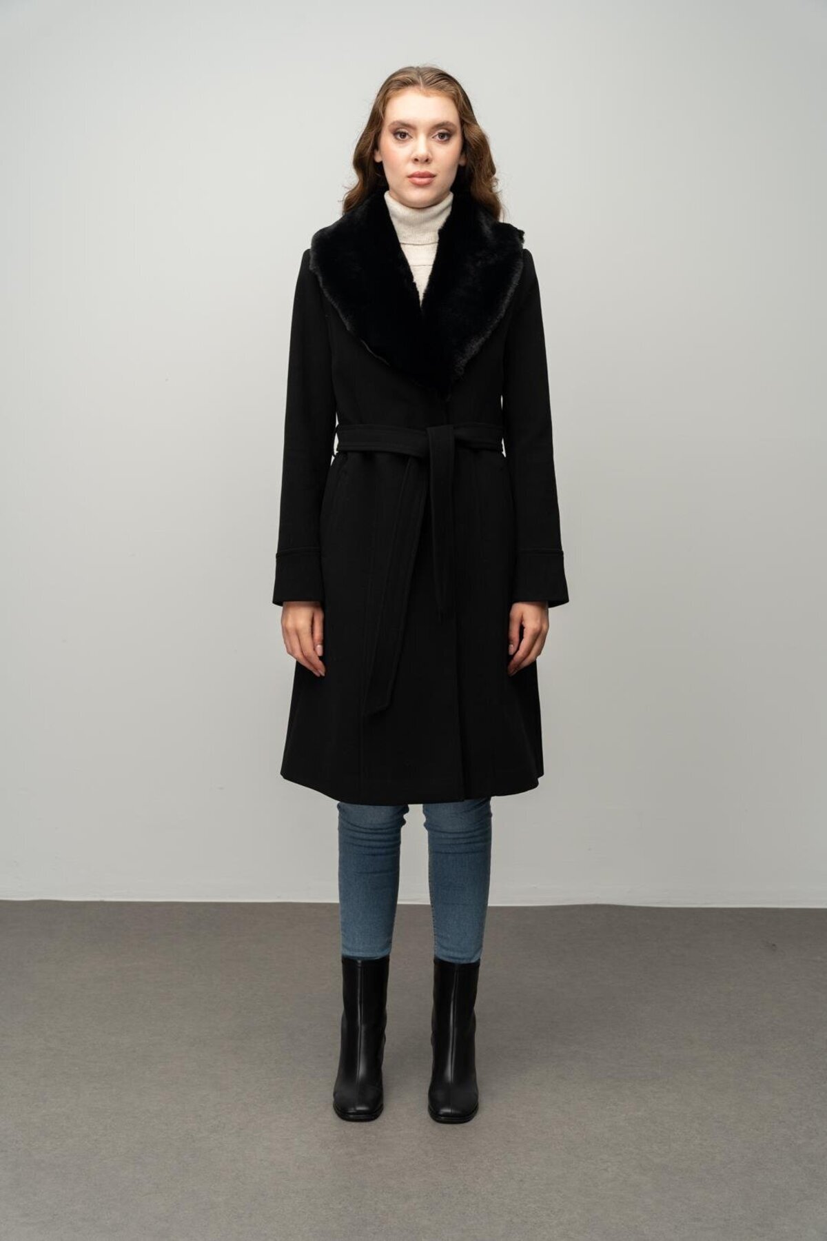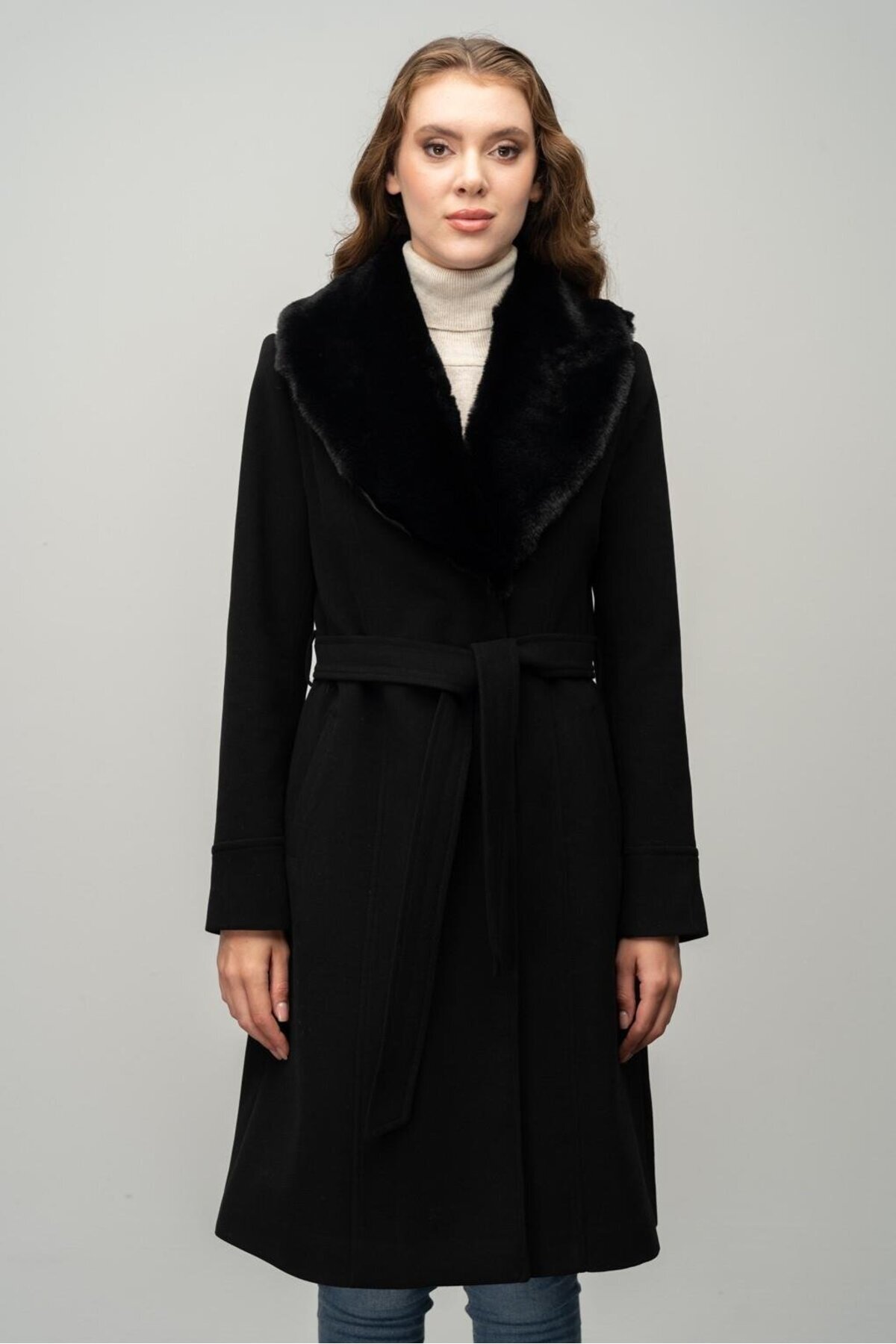 Yakası Çıkabilen Kürklü Çıt Çıt Kapamalı Belden Kuşaklı Kaban SİYAH 3016 Yakası Çıkabilen Kürklü Çıt Çıt Kapamalı Belden Kuşaklı Kaban SİYAH 3016 48