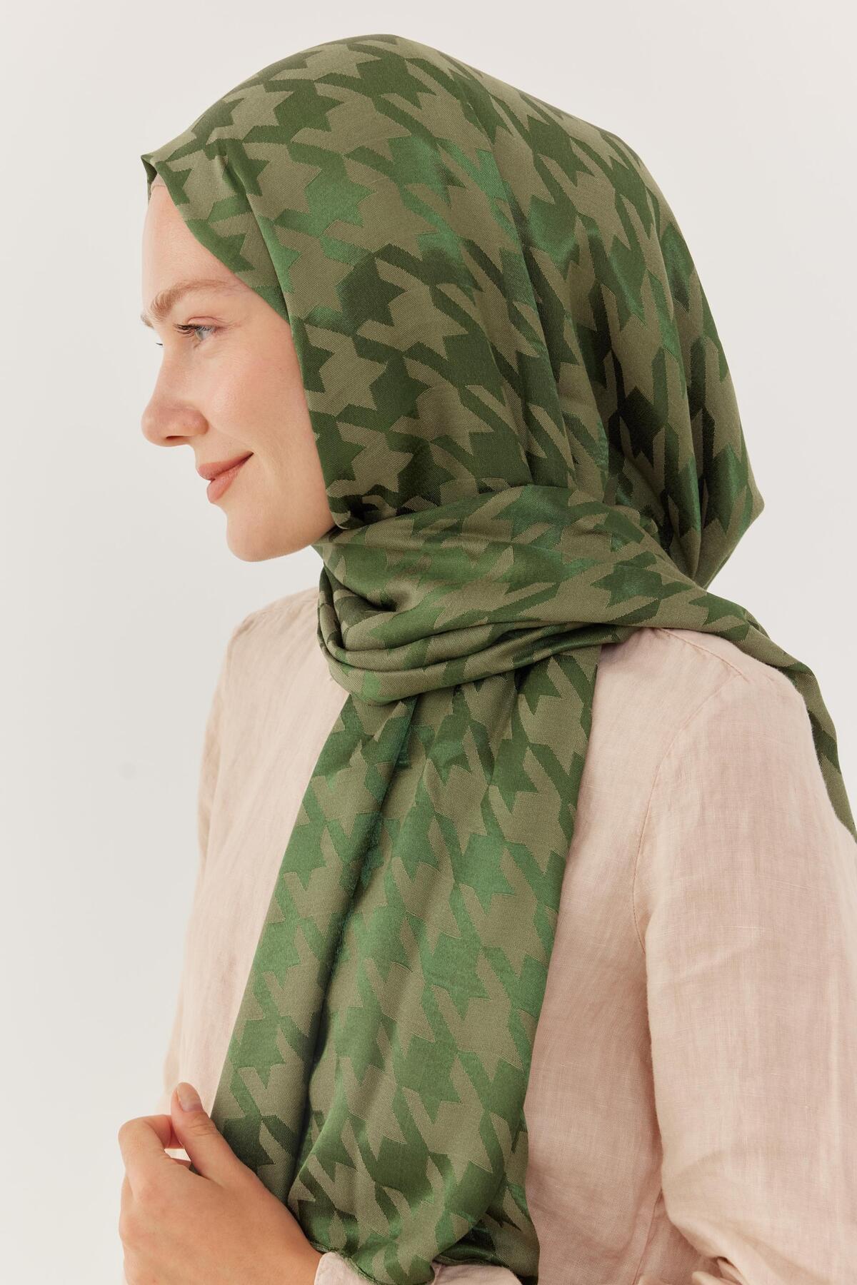 Kazayağı Desen Parlak Jakar Şal - Yeşil Kazayağı Desen Parlak Jakar Şal - Yeşil KAZPRLKJKR 75 x 185