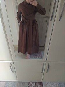 Belden Bağlamalı Tesettür Elbise-Kahverengi Belden Bağlamalı Tesettür Elbise-Kahverengi EVCM001 44
