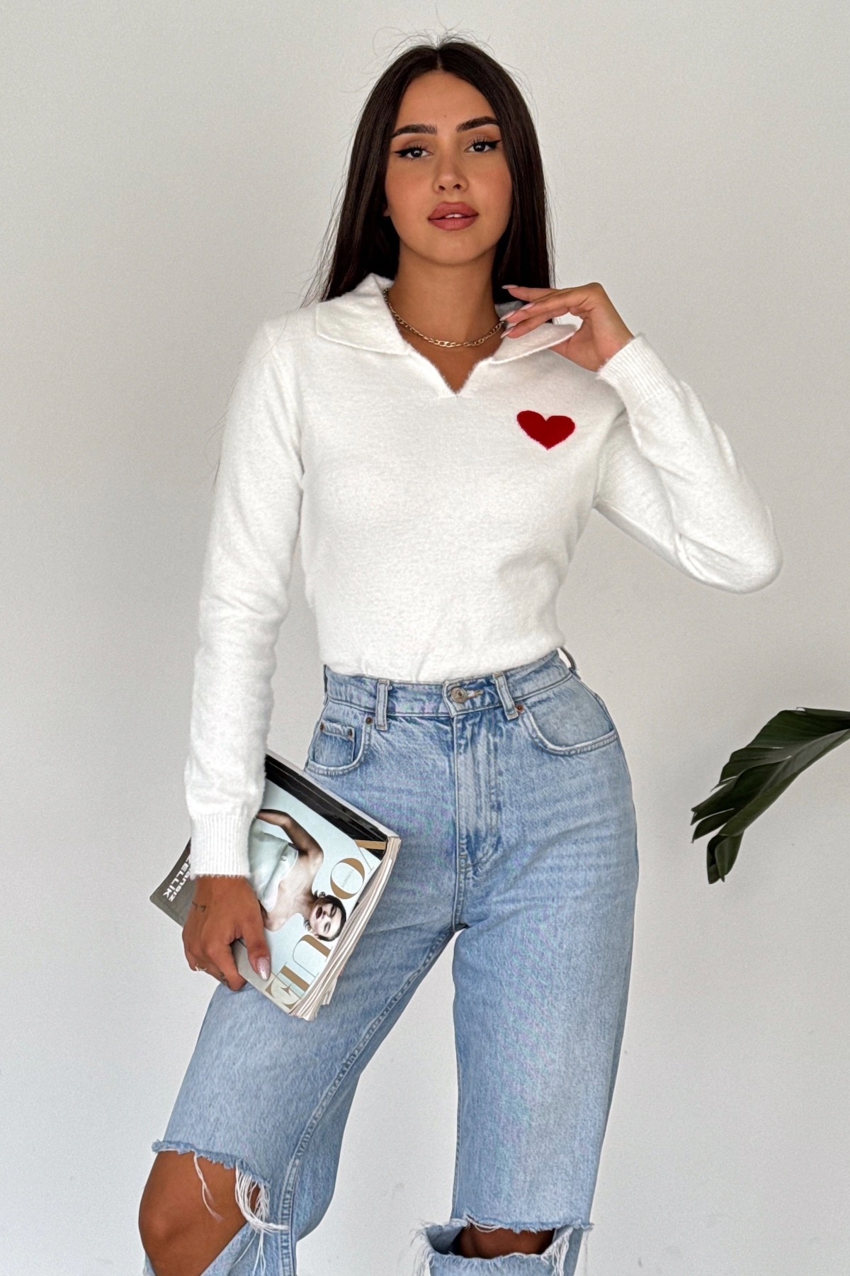 Kadın Siyah Standart Beden Polo Yaka Kalpli Pamuk Triko Kazak Kadın Siyah Standart Beden Polo Yaka Kalpli Pamuk Triko Kazak 080 Standart