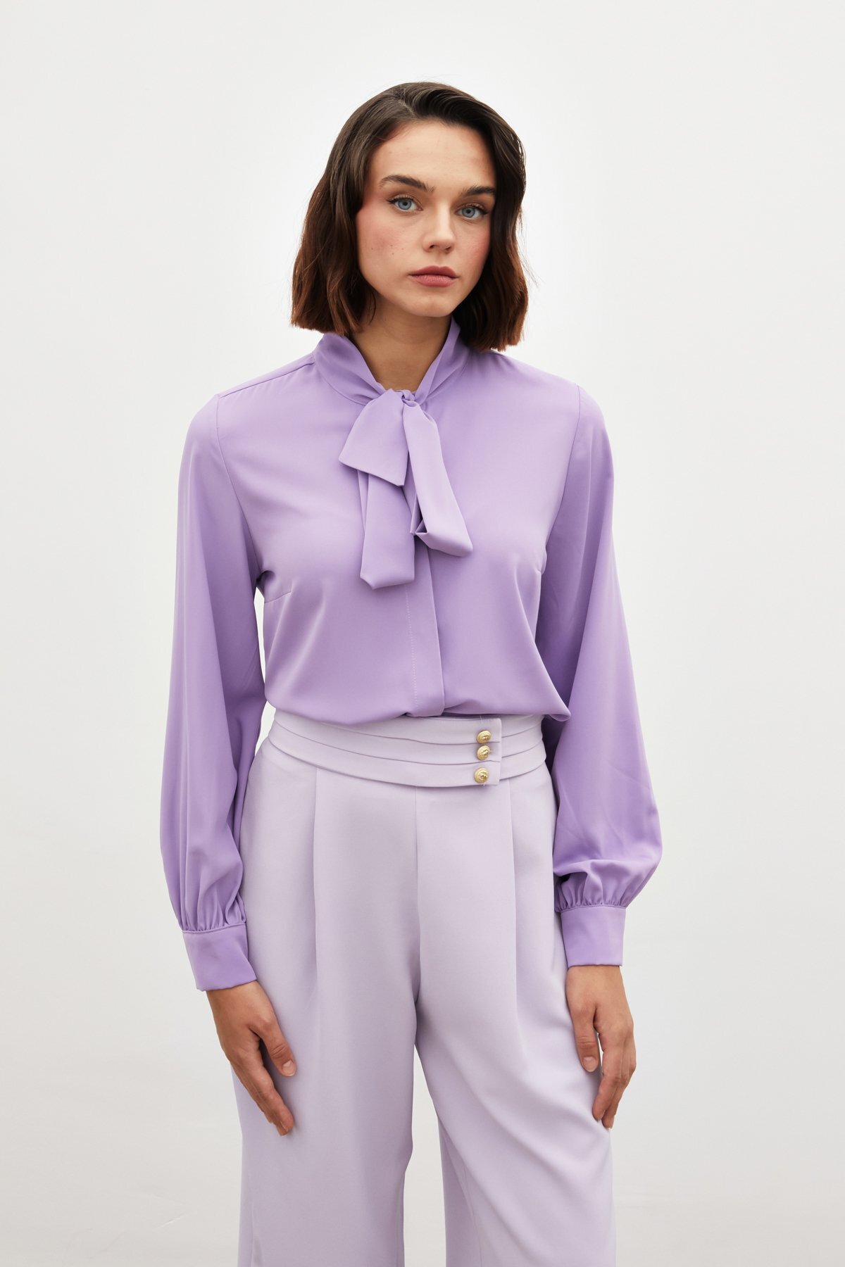 Yakası Bağlamalı Düz Gömlek - LİLA Yakası Bağlamalı Düz Gömlek - LİLA 20KGO139K267 42
