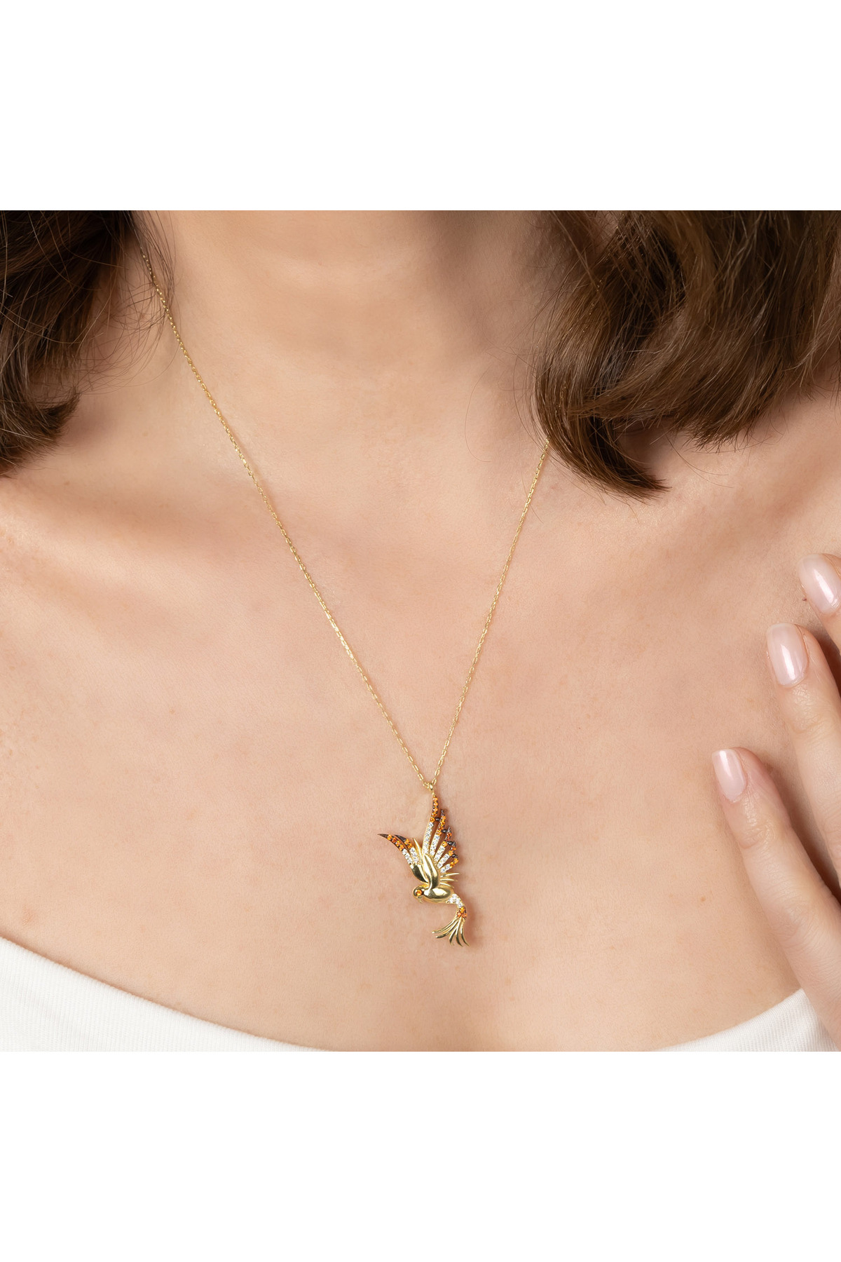 Prenses Turuncu Taşlı Anka Kuşu Altın Kaplama Kolye Prenses Turuncu Taşlı Anka Kuşu Altın Kaplama Kolye PRNSANKYSL 50