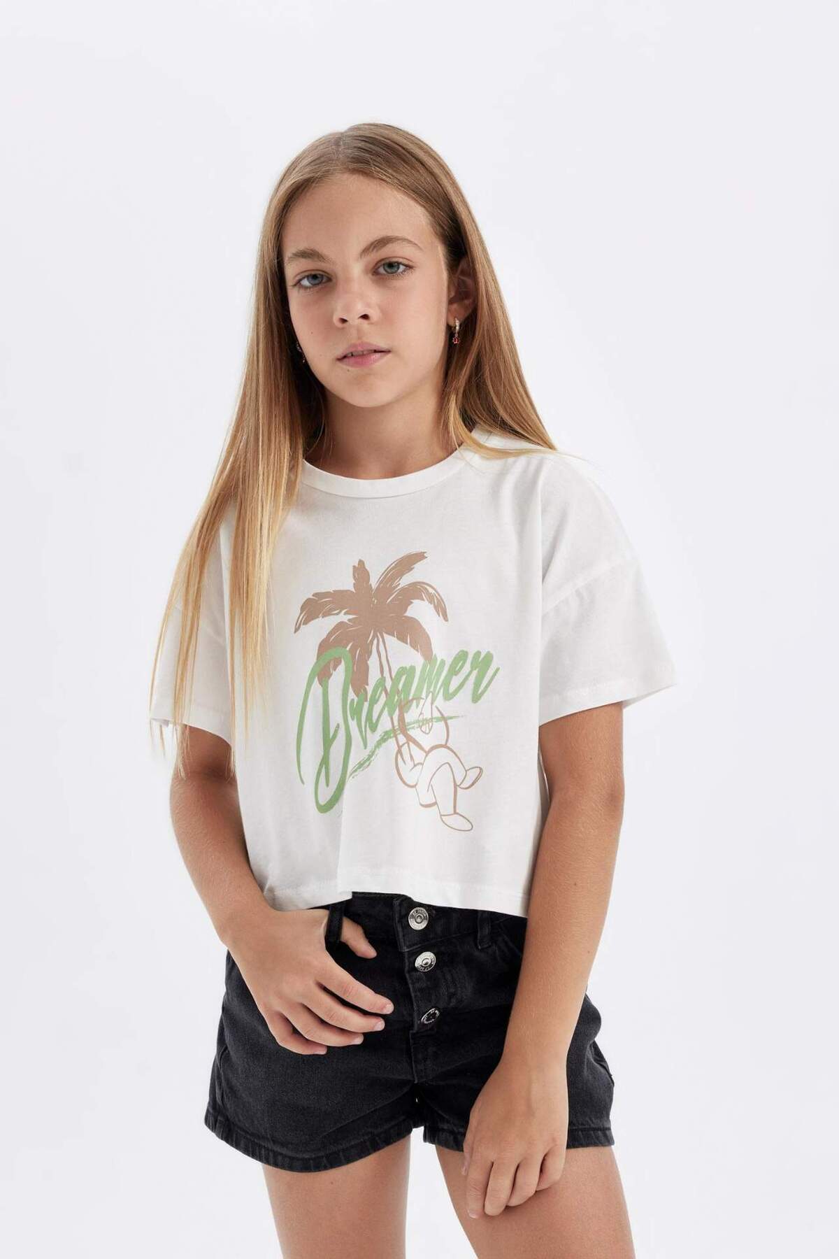 Kız Çocuk Crop Bisiklet Yaka Baskılı 2'li Kısa Kollu Tişört C5254A824SM Kız Çocuk Crop Bisiklet Yaka Baskılı 2'li Kısa Kollu Tişört C5254A824SM 13-14 Yaş