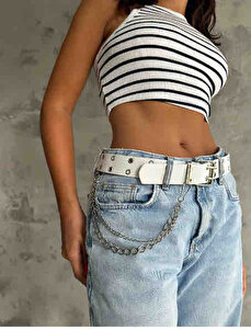 Kadın Beyaz Zincirli Kuş Gözü Kemer Elbise & Ceket & Pantolon & Etek & Şort Kemeri Kadın Beyaz Zincirli Kuş Gözü Kemer Elbise & Ceket & Pantolon & Etek & Şort Kemeri MM0001622021 95 CM