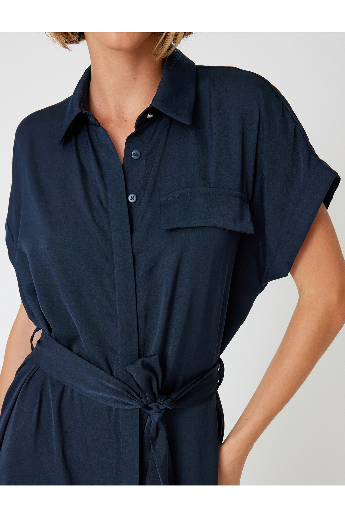 Midi Gömlek Elbise Kemer Detaylı Kısa Kollu Aerobin Kumaş Midi Gömlek Elbise Kemer Detaylı Kısa Kollu Aerobin Kumaş 4SAK80022PW 46