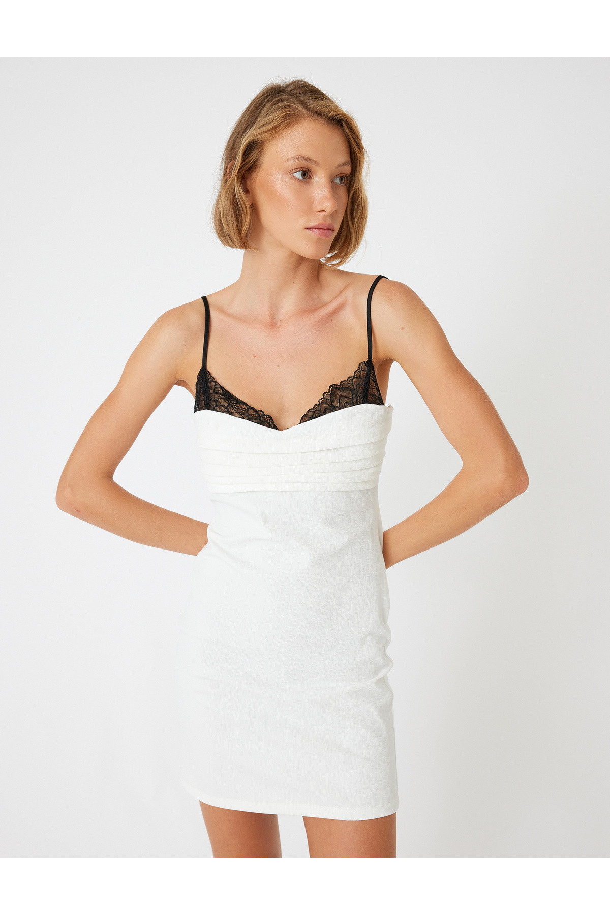 Mini Elbise Dantel Detaylı Askılı Kalp Yaka Slim Fit Mini Elbise Dantel Detaylı Askılı Kalp Yaka Slim Fit 4SAK80179FK L