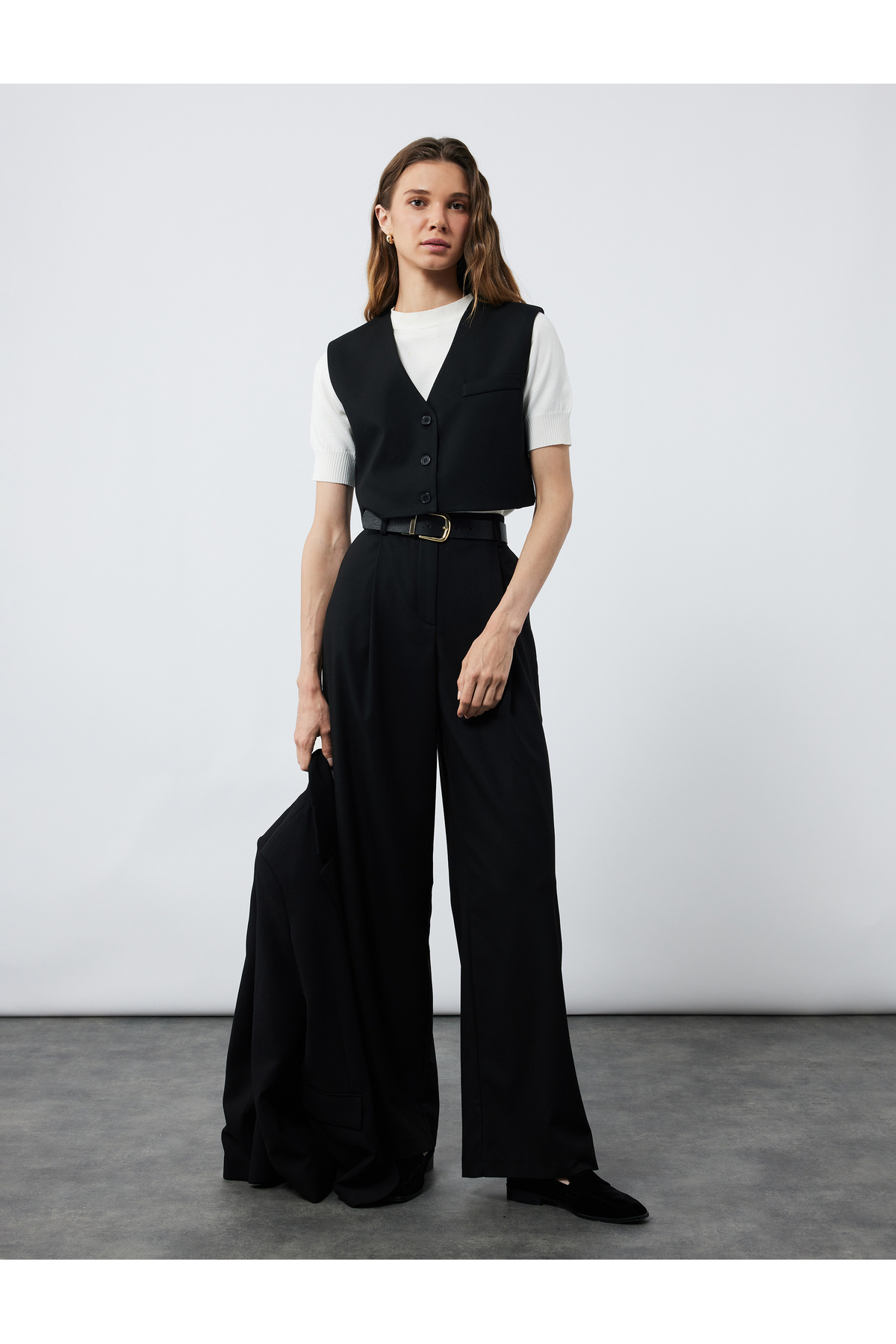 Cepli Pile Detaylı Yüksek Bel Palazzo Pantolon Cepli Pile Detaylı Yüksek Bel Palazzo Pantolon 5WAK40119UW 42