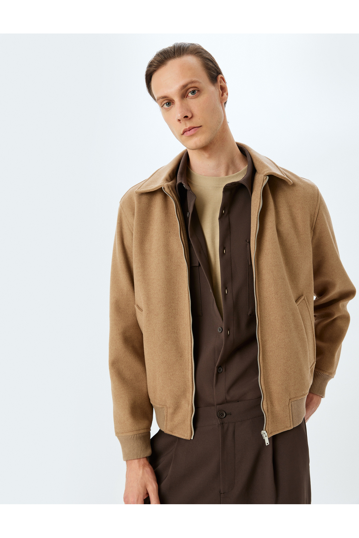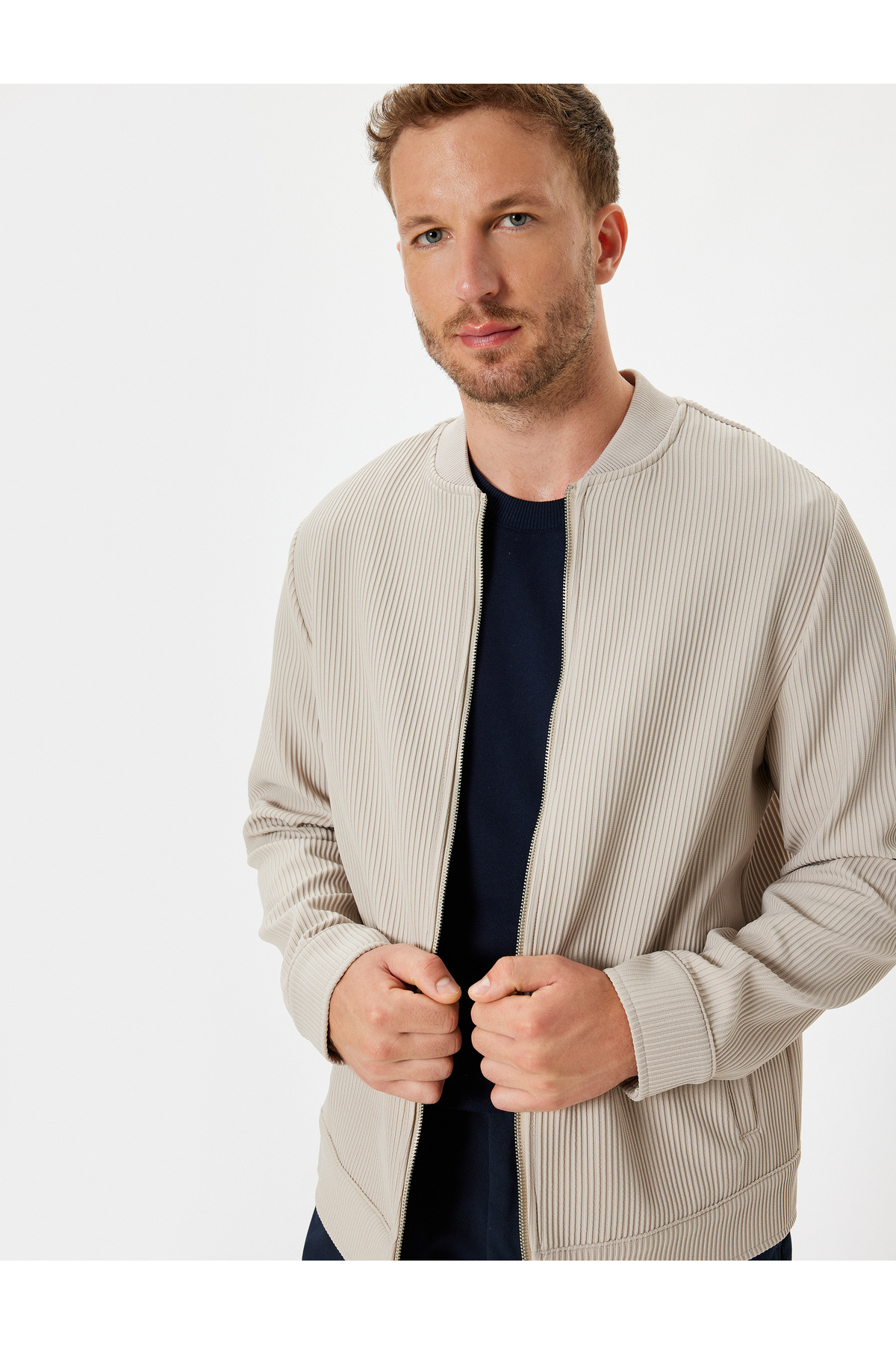 Bomber Ceket Fitilli Fermuarlı Bomber Ceket Fitilli Fermuarlı 5WAM50021HW 56