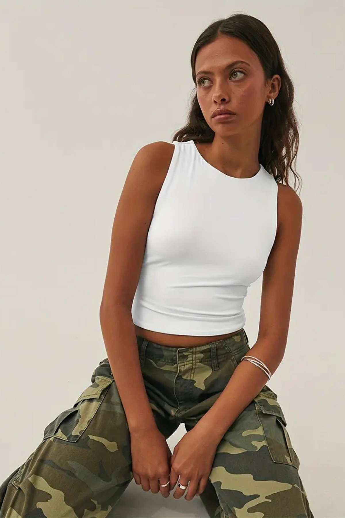 Ekru Önü Arkası U Yaka Triko Bluz Ekru Önü Arkası U Yaka Triko Bluz 16133 L