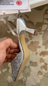 Gümüş cam taşlı 6 cm topuklu ayakkabı 01210 Gümüş cam taşlı 6 cm topuklu ayakkabı 01210 TYCF7478310C8ECE01 40