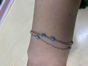 925 Ayar Gümüş 3 Sıra Zincirli Turkuaz Renkli Bileklik 925 Ayar Gümüş 3 Sıra Zincirli Turkuaz Renkli Bileklik ESR999201 تک سایز