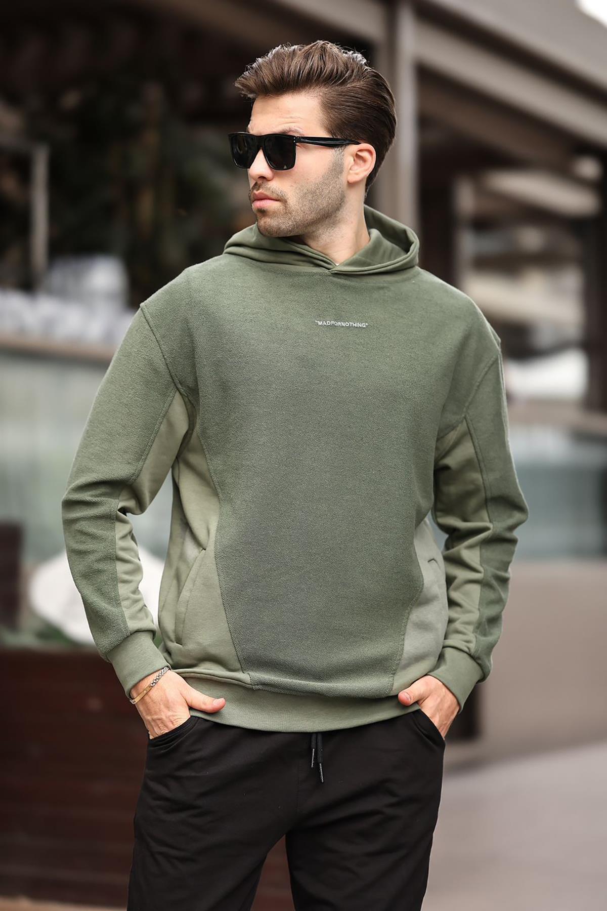 Haki Kapüşonlu Cep Detaylı Nakışlı Erkek Sweatshirt 7050 Haki Kapüşonlu Cep Detaylı Nakışlı Erkek Sweatshirt 7050 2XL