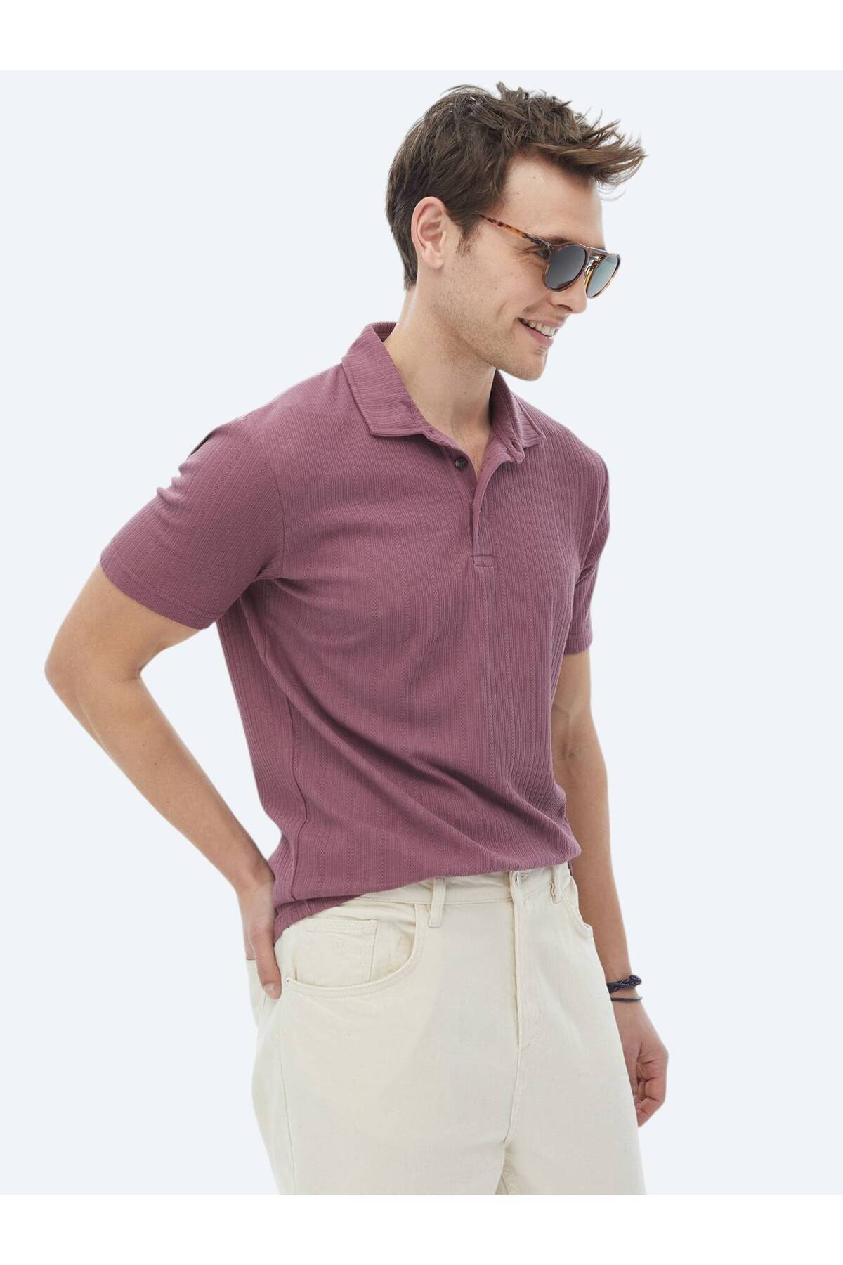Gül Kurusu Jakarlı Polo Yaka Pamuk Karışımlı T-Shirt Gül Kurusu Jakarlı Polo Yaka Pamuk Karışımlı T-Shirt 10148299-830 3XL