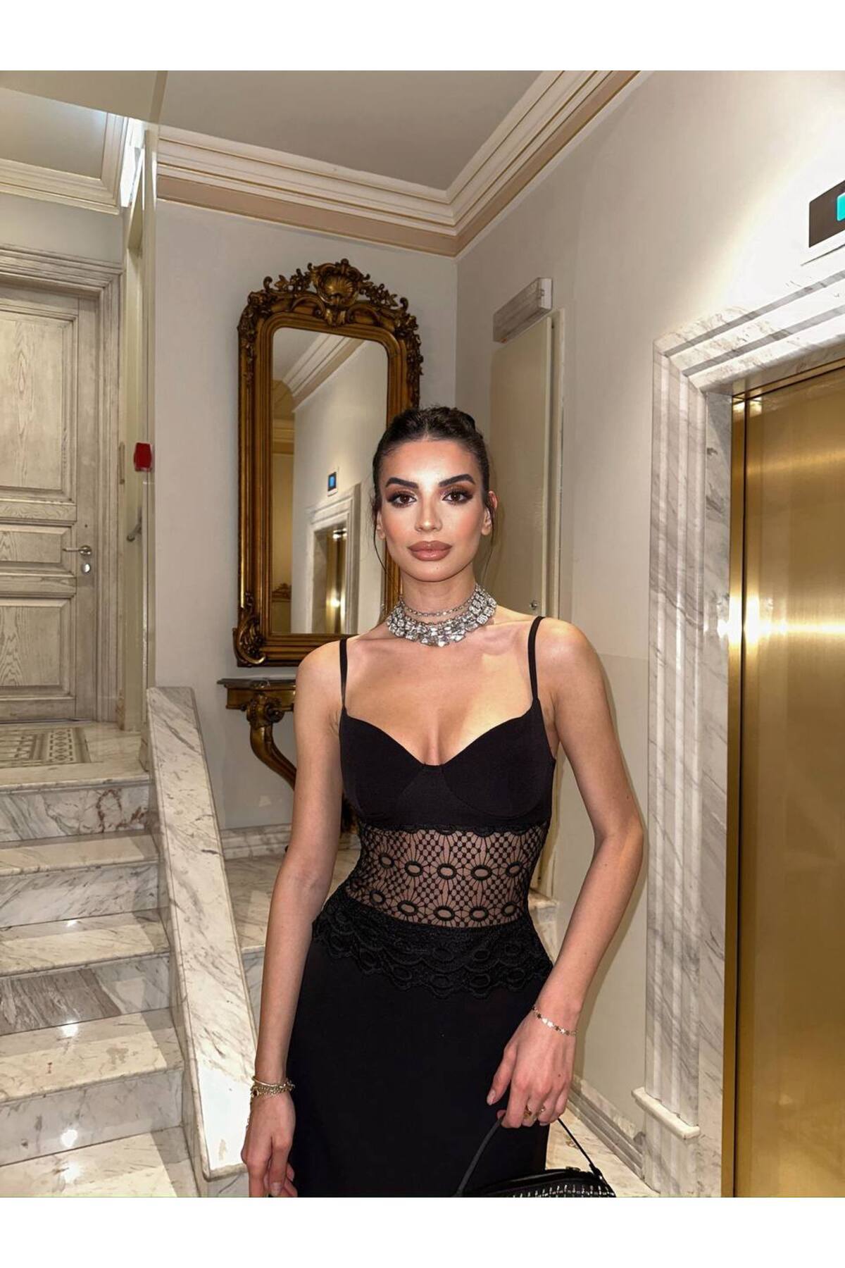 ELİZABETH SİYAH GÜPÜRLÜ ELBİSE ELİZABETH SİYAH GÜPÜRLÜ ELBİSE 10150 XL