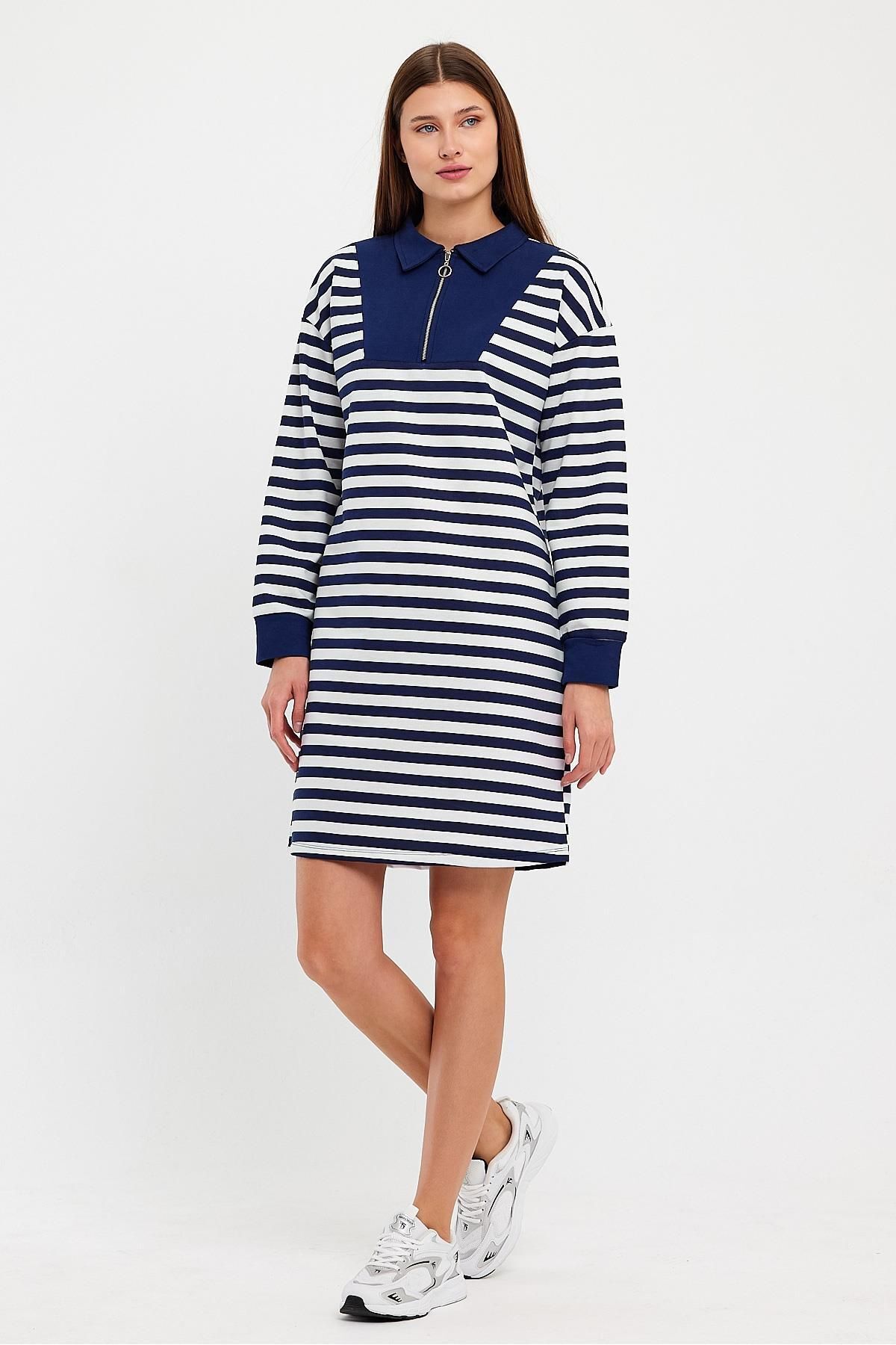 Kadın Çizgili Kuşaklı Omuz Düğme Detaylı Elbise Kadın Çizgili Kuşaklı Omuz Düğme Detaylı Elbise ESP-E00135 2XL