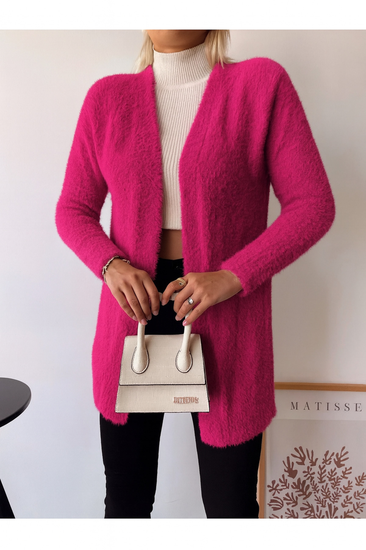 Kadın Fuşya Oversize Pon Ponlu Yürütme Örgülü Uzun Yün Karışımlı Triko Örme Hırka TRIST-6165 Kadın Fuşya Oversize Pon Ponlu Yürütme Örgülü Uzun Yün Karışımlı Triko Örme Hırka TRIST-6165 L/XL