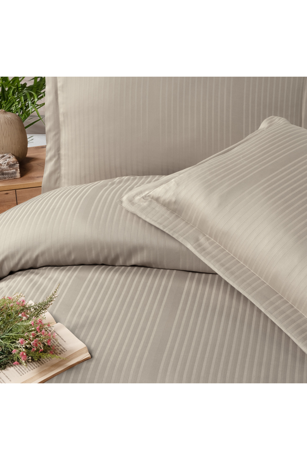 Home Shine Çizgili Pamuk Saten Çift Kişilik Nevresim Takımı 4 Parça Home Shine Çizgili Pamuk Saten Çift Kişilik Nevresim Takımı 4 Parça 3ST678-32902-BEJ01 تک سایز