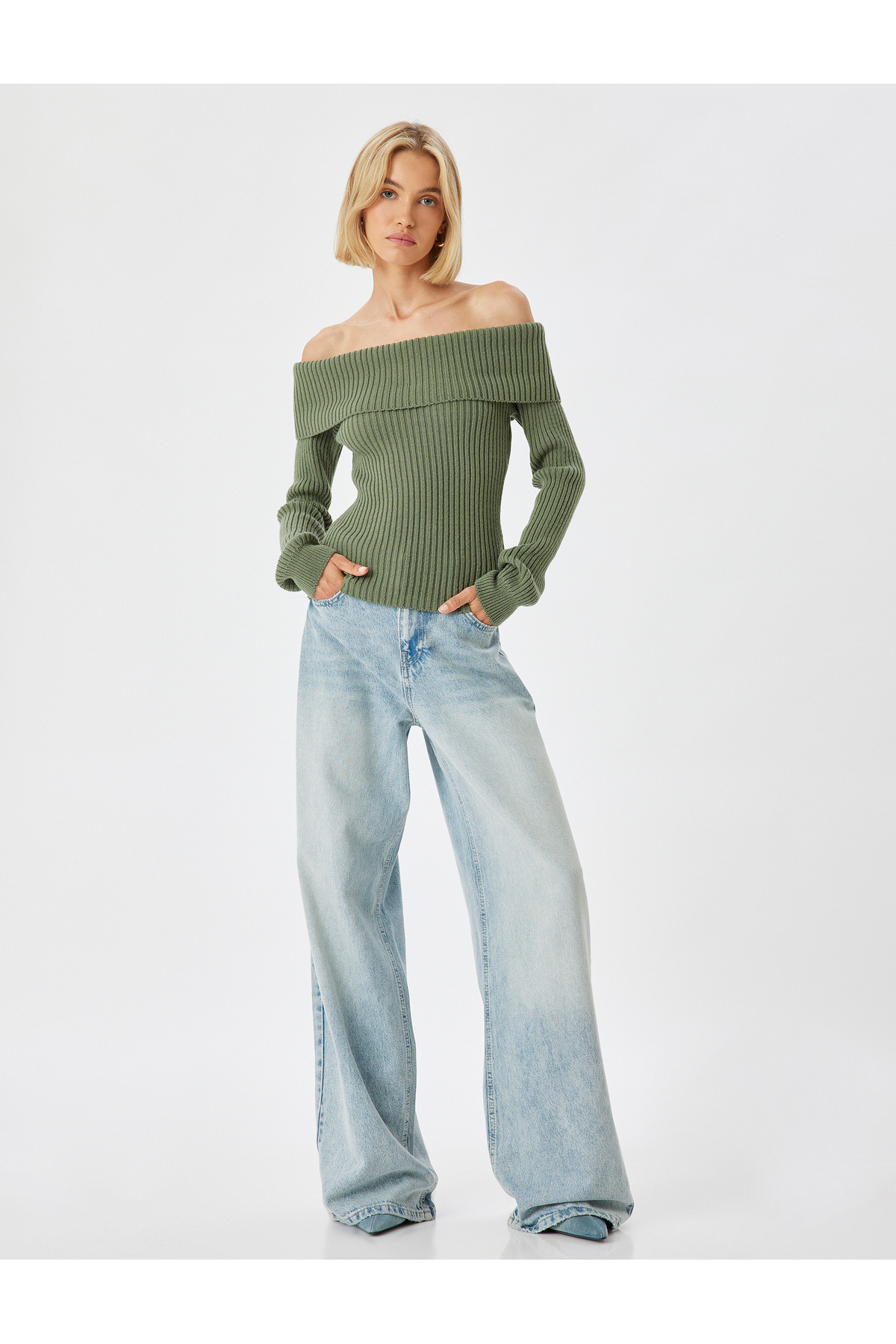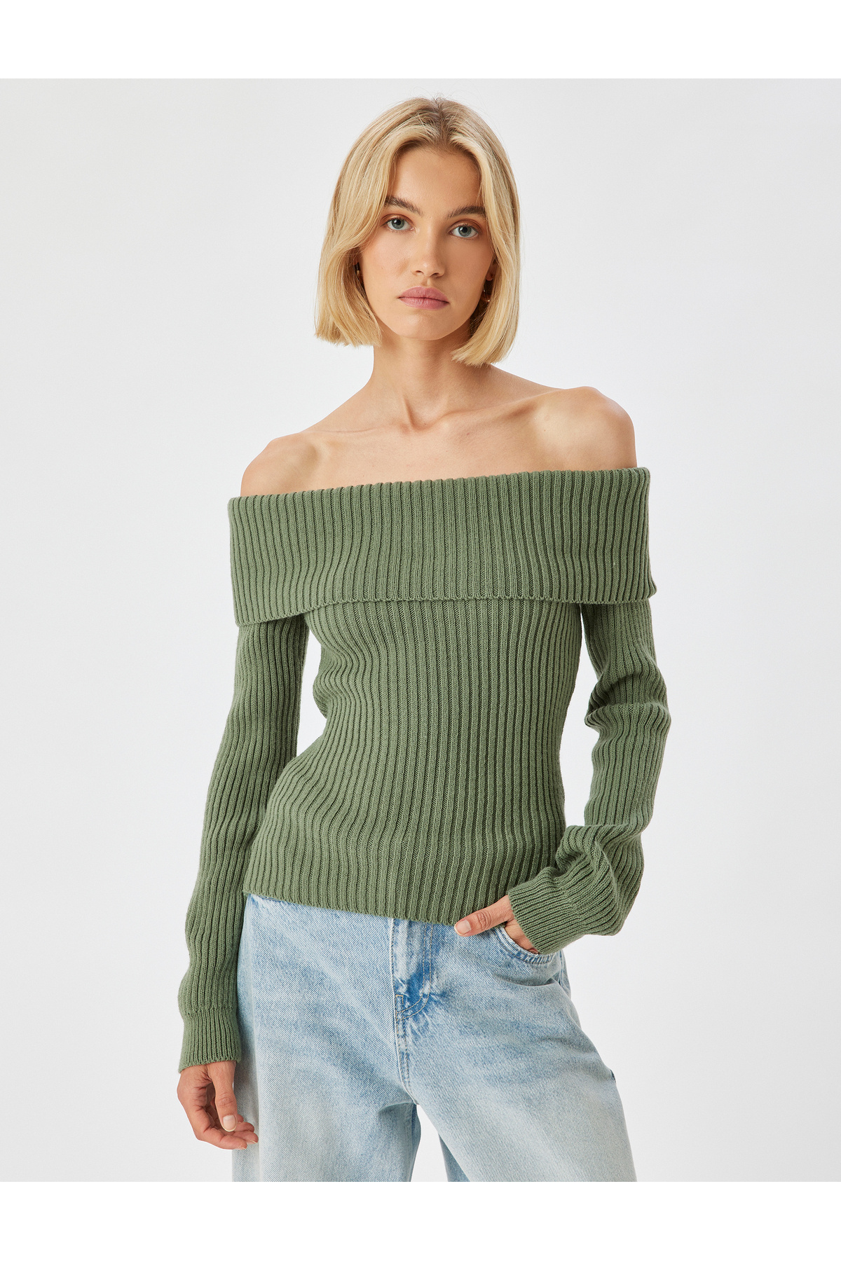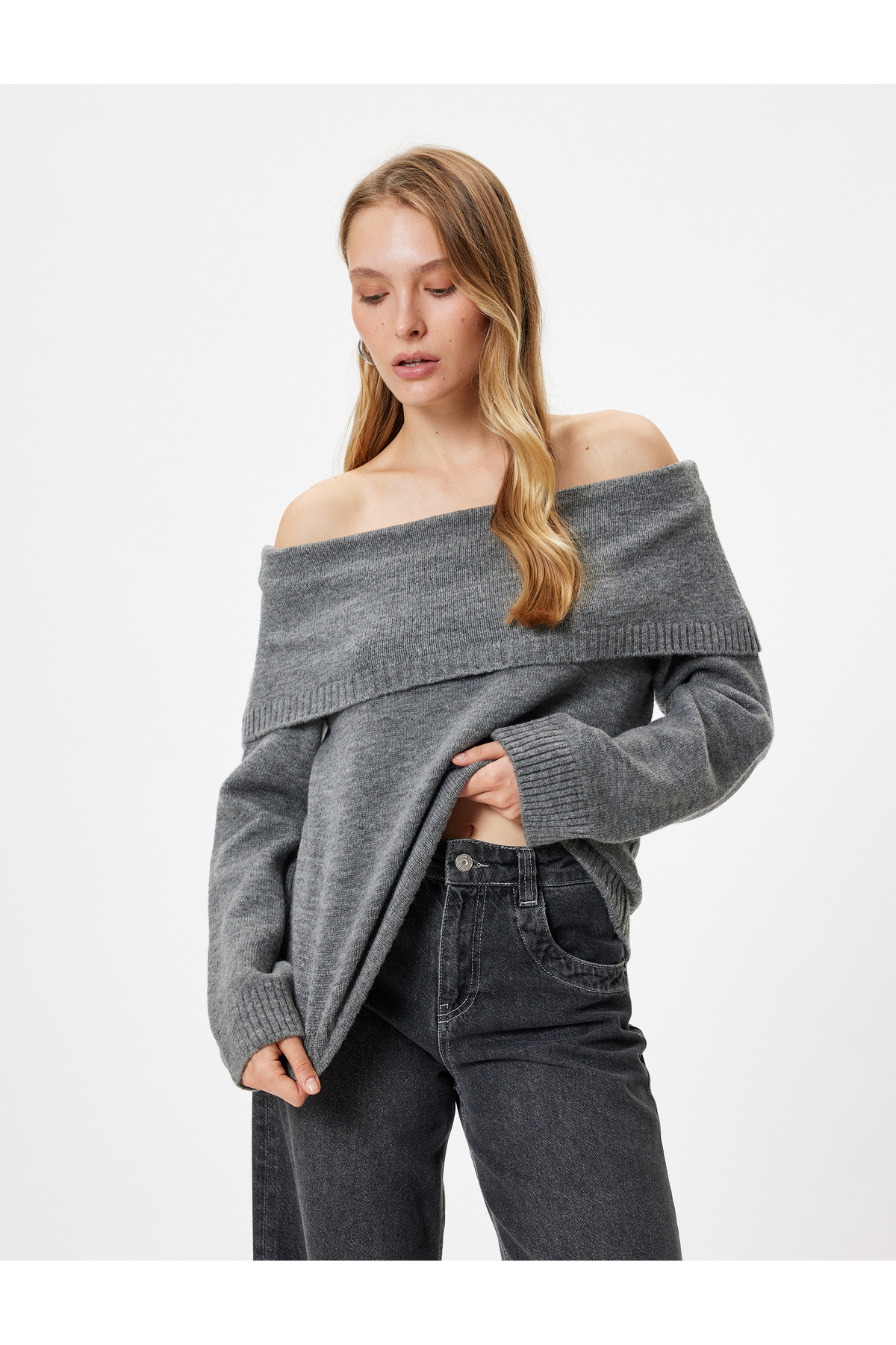 Omzu Açık Triko Kazak Uzun Kollu Omzu Açık Triko Kazak Uzun Kollu 5WAK90245HT XL