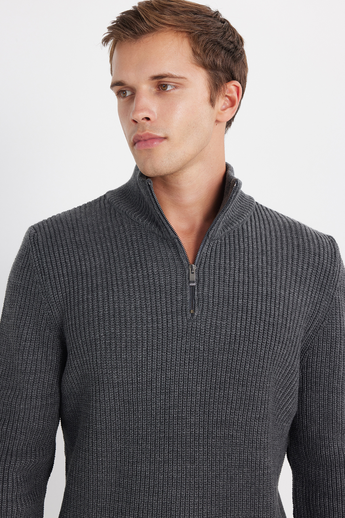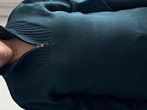 Erkek Slim Fit Dar Kesim Armürlü Fermuarlı Yeşil Dik Yaka Triko Kazak Erkek Slim Fit Dar Kesim Armürlü Fermuarlı Yeşil Dik Yaka Triko Kazak KZ230014-02 2XL