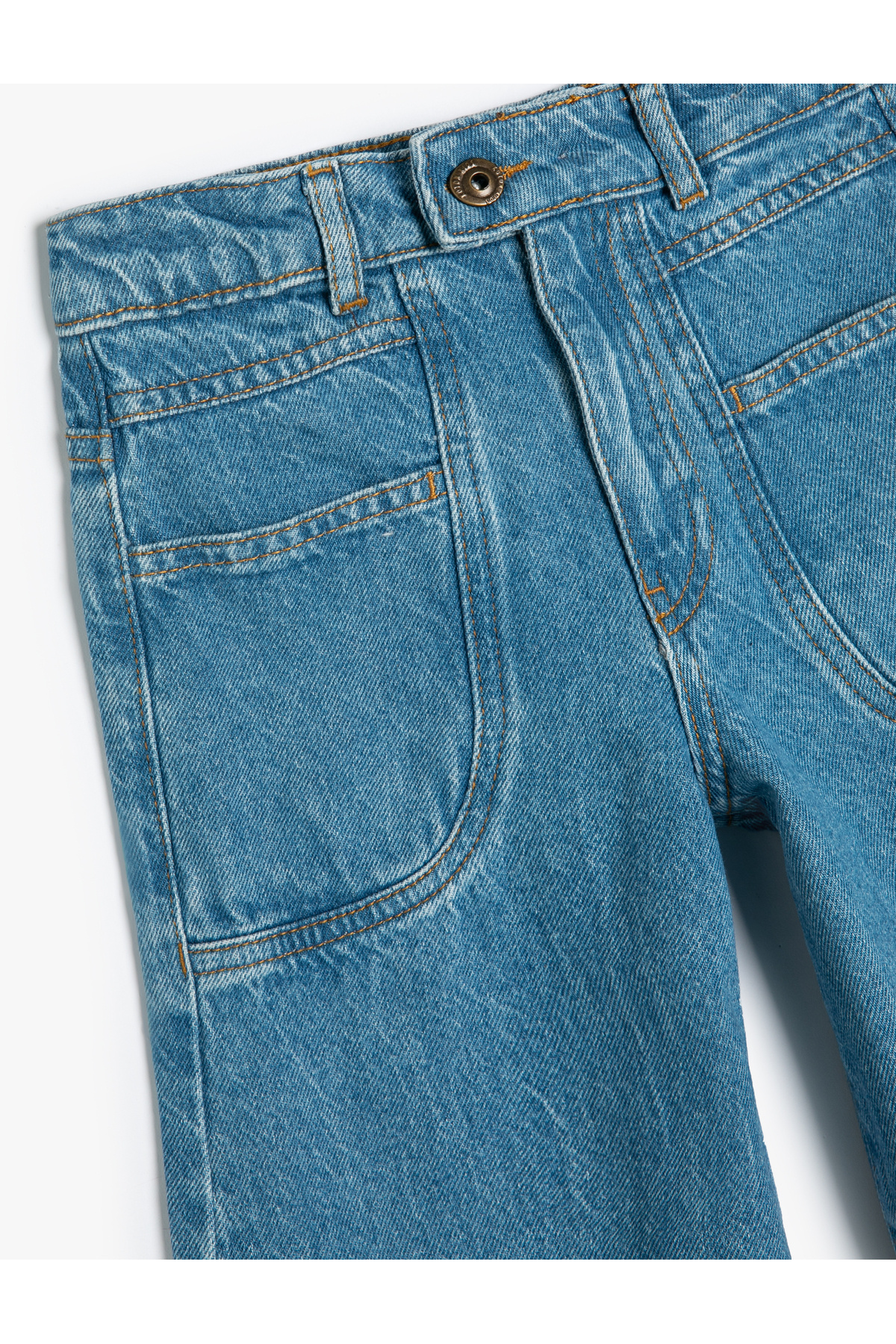 Geniş Paça Kot Pantolon Cepli Pamuklu - Wide Leg Jean Geniş Paça Kot Pantolon Cepli Pamuklu - Wide Leg Jean 5WKG40014AD 13-14 Yaş