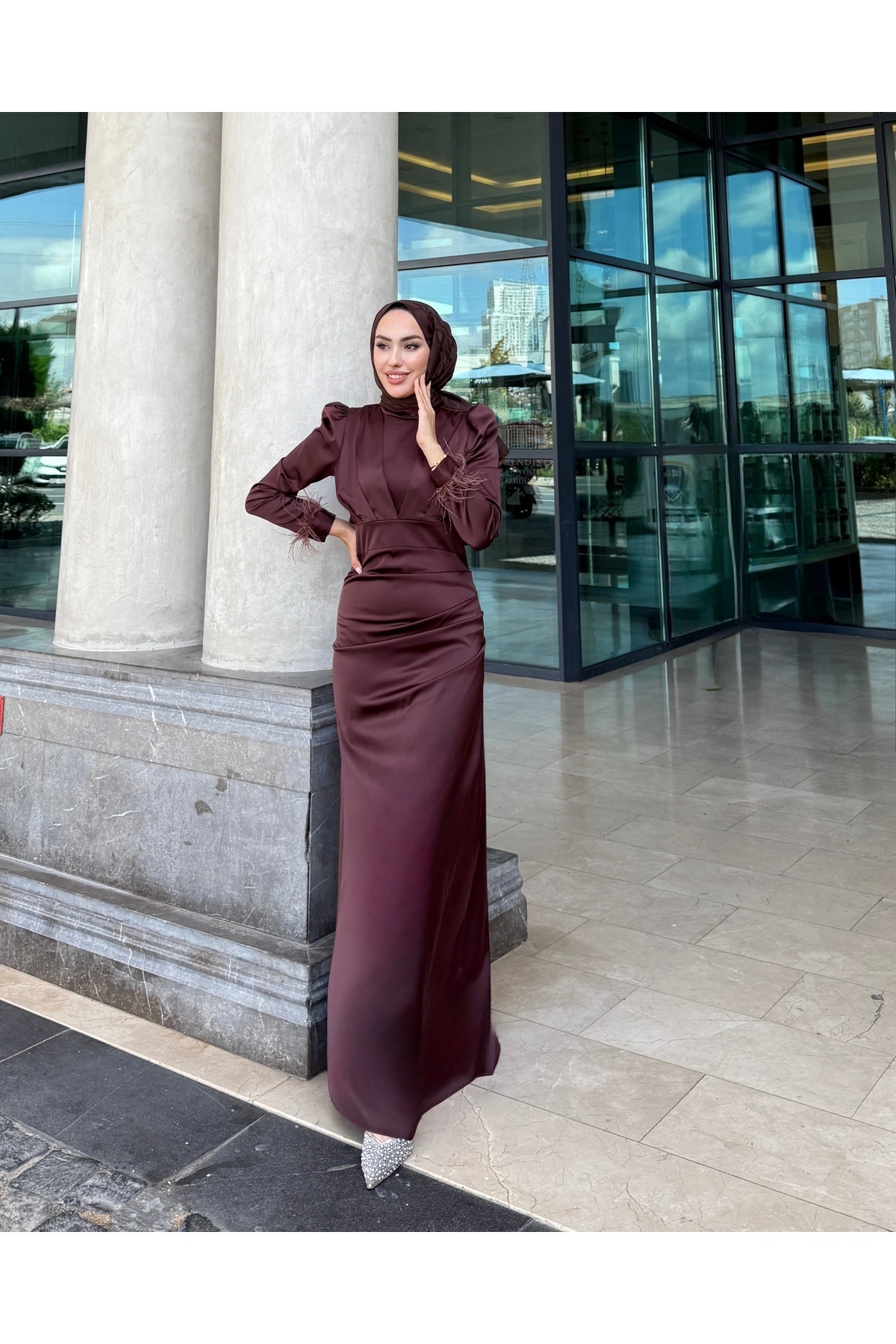 Kolları Püsküllü Kuyruklu Saten Tesettür Abiye Kolları Püsküllü Kuyruklu Saten Tesettür Abiye mhmt2121 42
