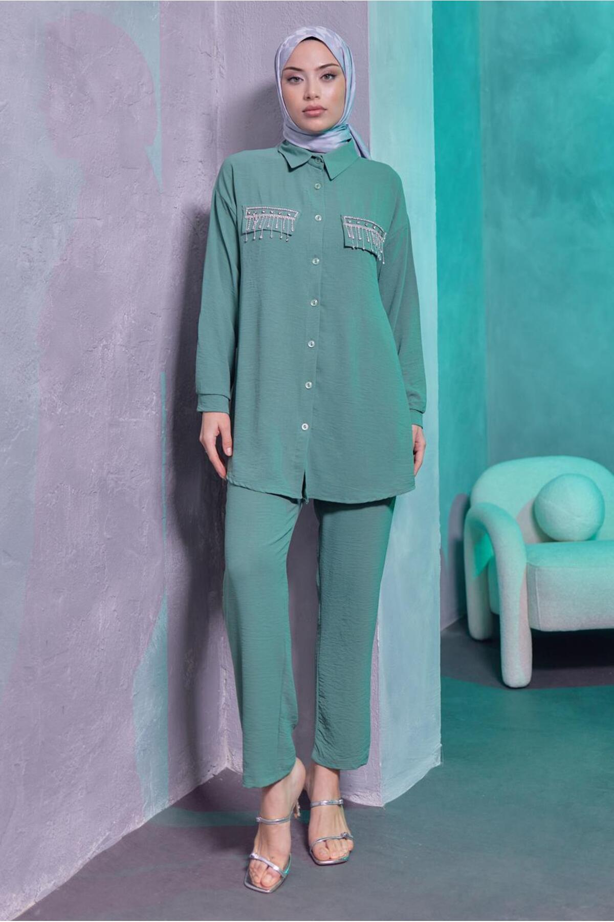 KADIN YEŞİL (ZÜMRÜT) TAŞ DETAYLI PANTOLONLU TAKIM T 2804 KADIN YEŞİL (ZÜMRÜT) TAŞ DETAYLI PANTOLONLU TAKIM T 2804 24YTKPTR2804 XL