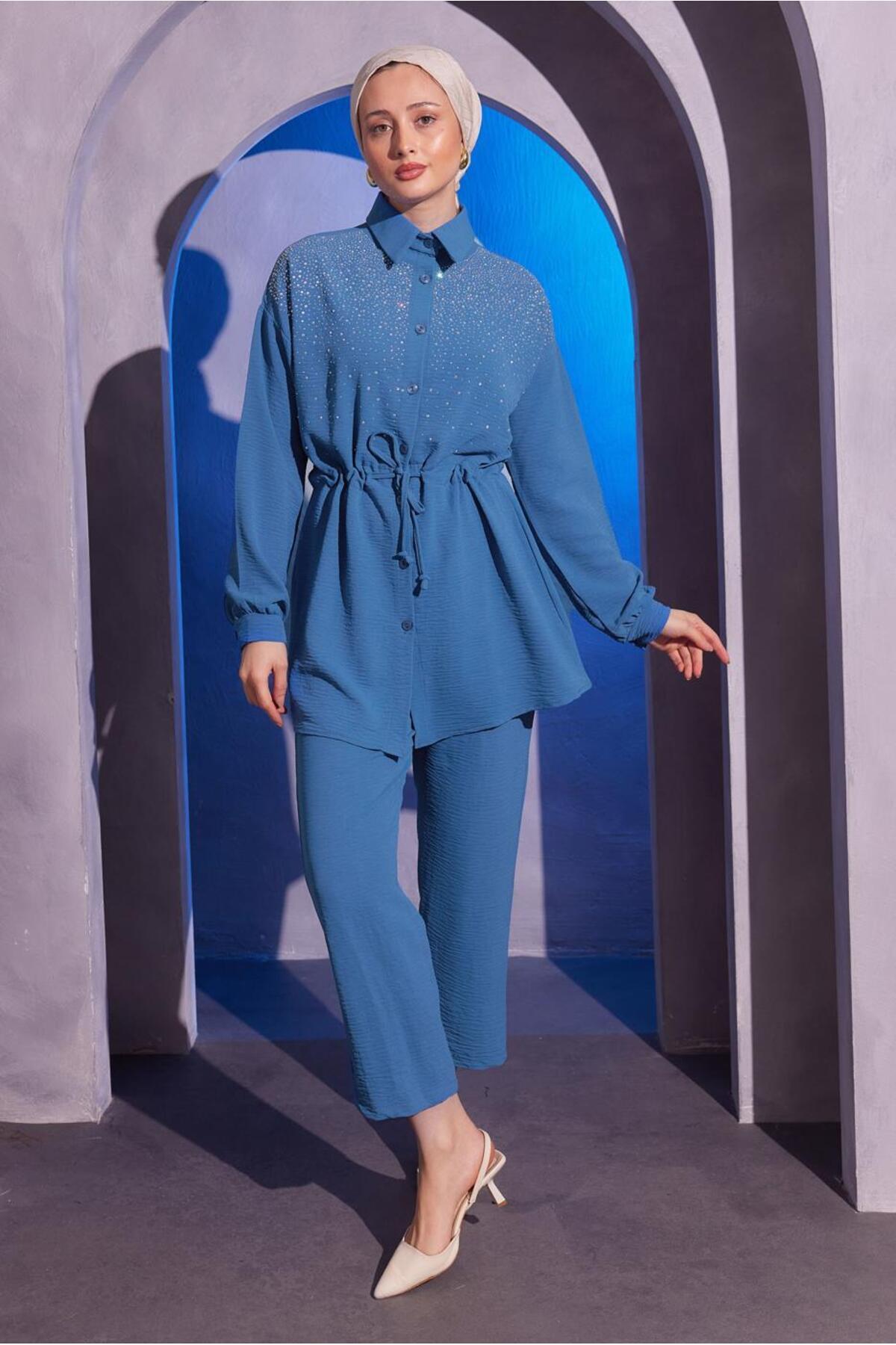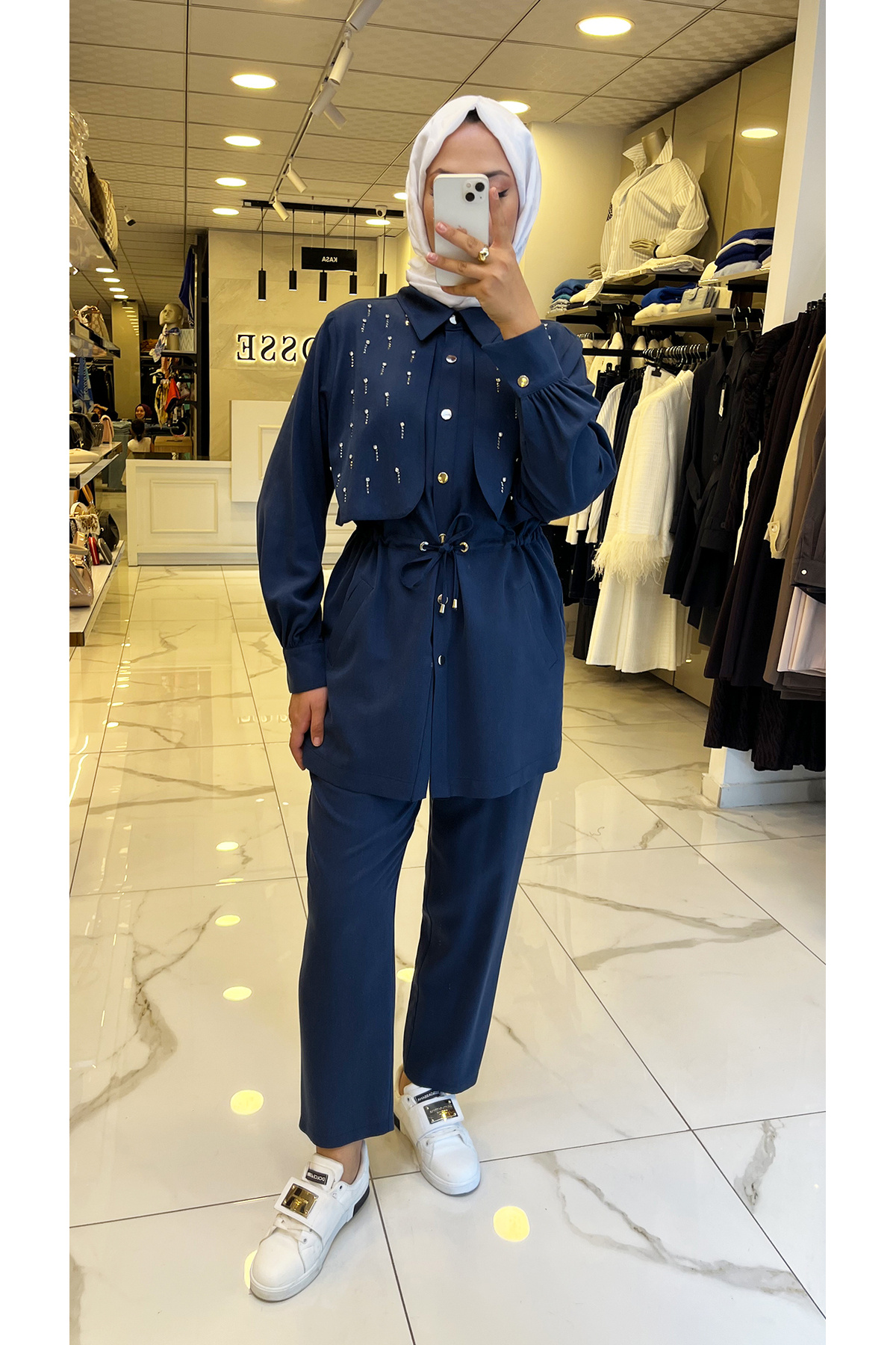 KADIN LACİVERT (İNDİGO) TAŞ DETAYLI PANTOLONLU TAKIM T 2804 KADIN LACİVERT (İNDİGO) TAŞ DETAYLI PANTOLONLU TAKIM T 2804 24YTKPTR2804
