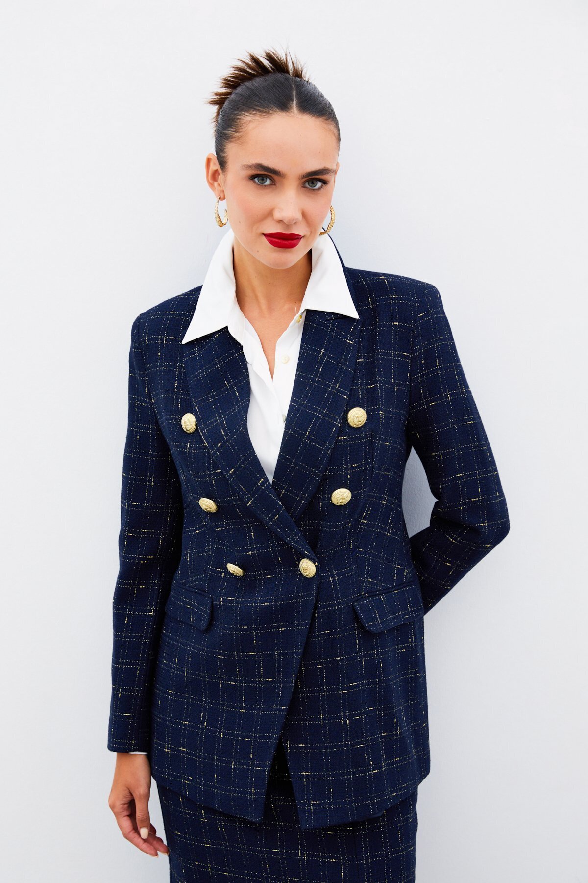 Kadın Bronş Detaylı Truvakar Kol blazer Ceket Kadın Bronş Detaylı Truvakar Kol blazer Ceket CD6859 XL