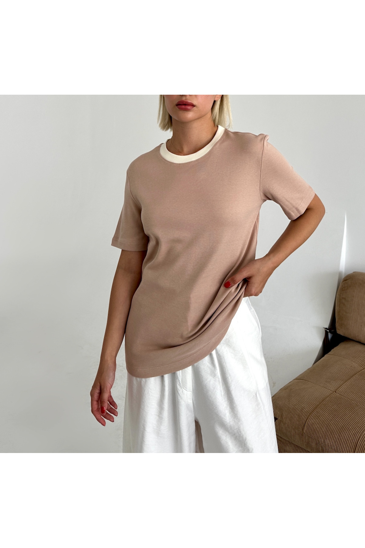 Kadın Bisiklet Yaka Organik Pamuklu Tişört T-Shirt Kadın Bisiklet Yaka Organik Pamuklu Tişört T-Shirt 107-0032122 L