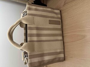 Kadın Vizon Çizgili Keten Orta Boy Çapraz Askılı El Ve Omuz Çantası Kadın Vizon Çizgili Keten Orta Boy Çapraz Askılı El Ve Omuz Çantası LB_100078 تک سایز