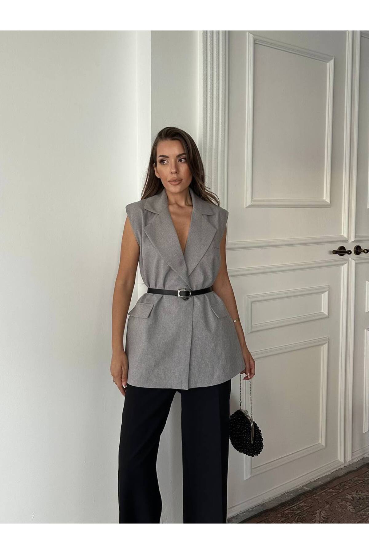 Gri bisiklet yaka yelek Gri bisiklet yaka yelek 00000177 L