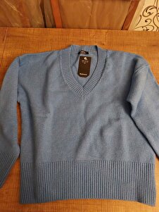 Mavi V Yaka Oversize Kadın Triko Kazak MG2149 Mavi V Yaka Oversize Kadın Triko Kazak MG2149 L