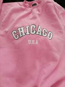 pembe chicago baskılı bisiklet yaka sweatshirt pembe chicago baskılı bisiklet yaka sweatshirt 34 XL