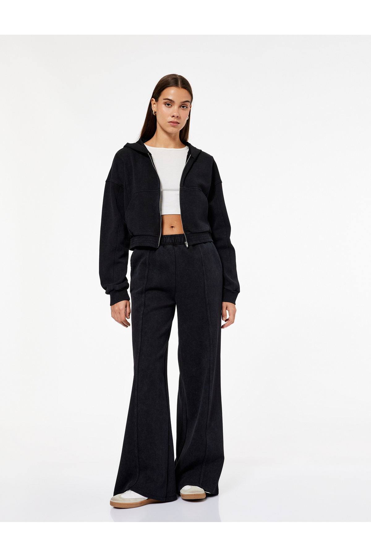 Şardonlu Crop Sweatshirt Kapüşonlu Fermuarlı Korse Görünümlü Şardonlu Crop Sweatshirt Kapüşonlu Fermuarlı Korse Görünümlü 5WAL10171IK XL