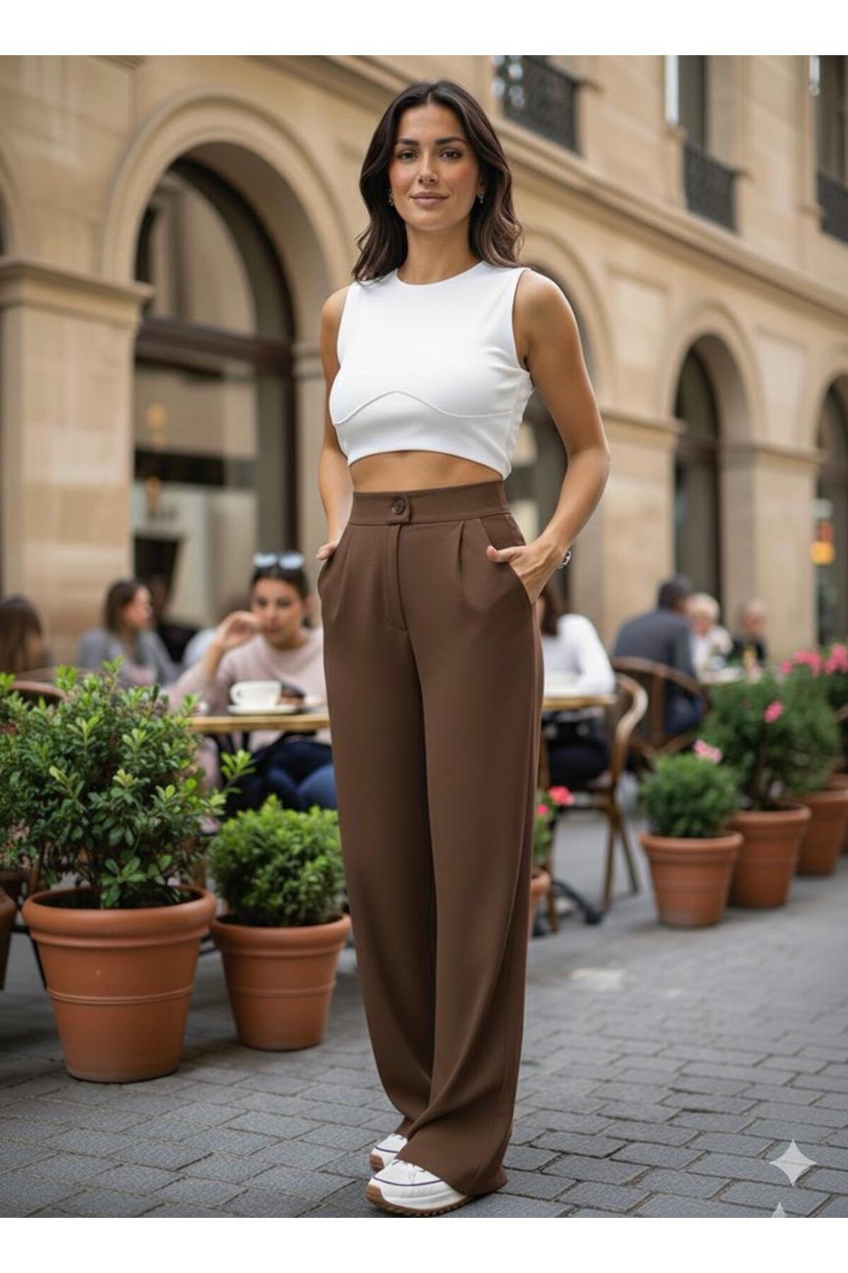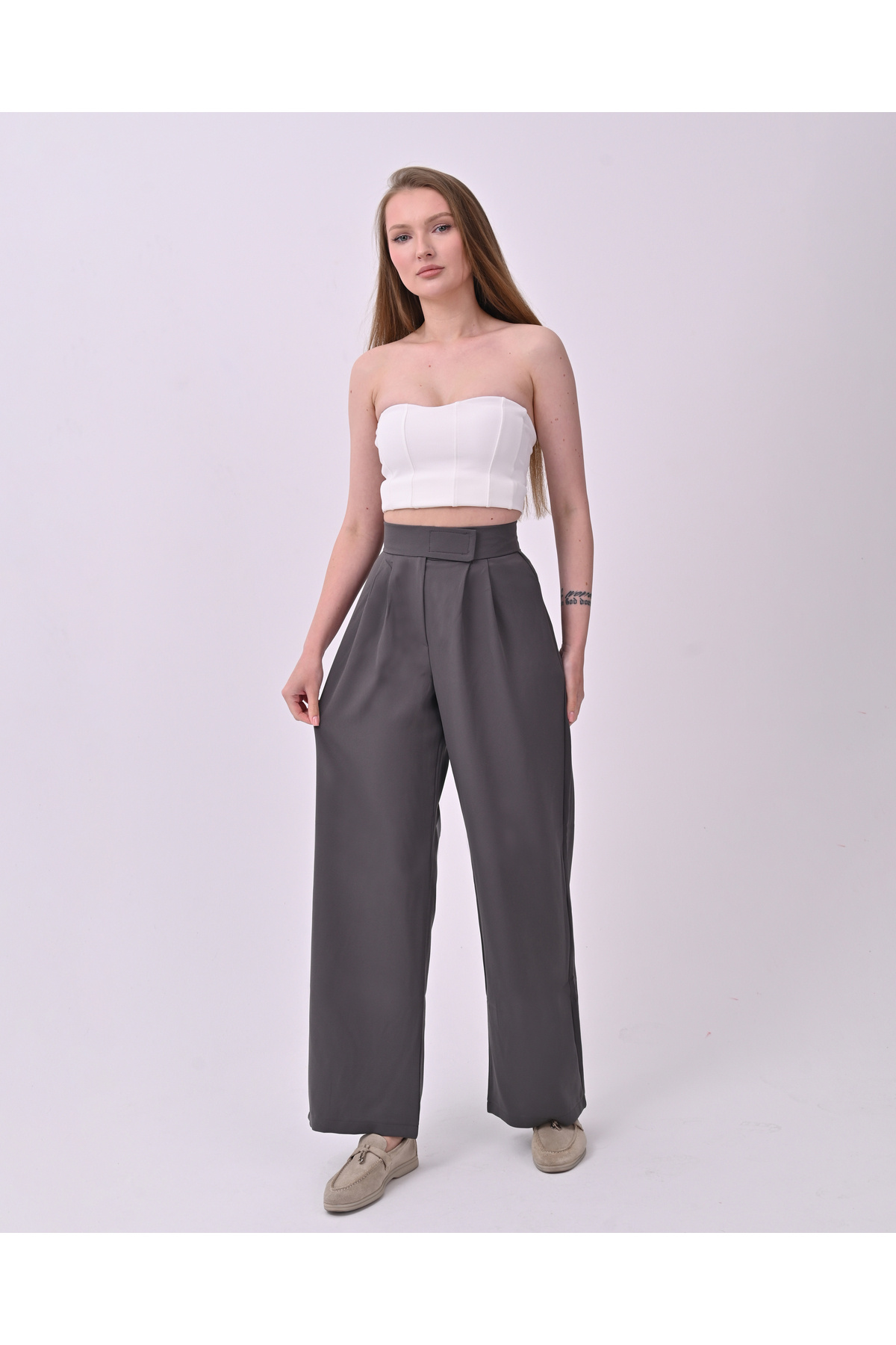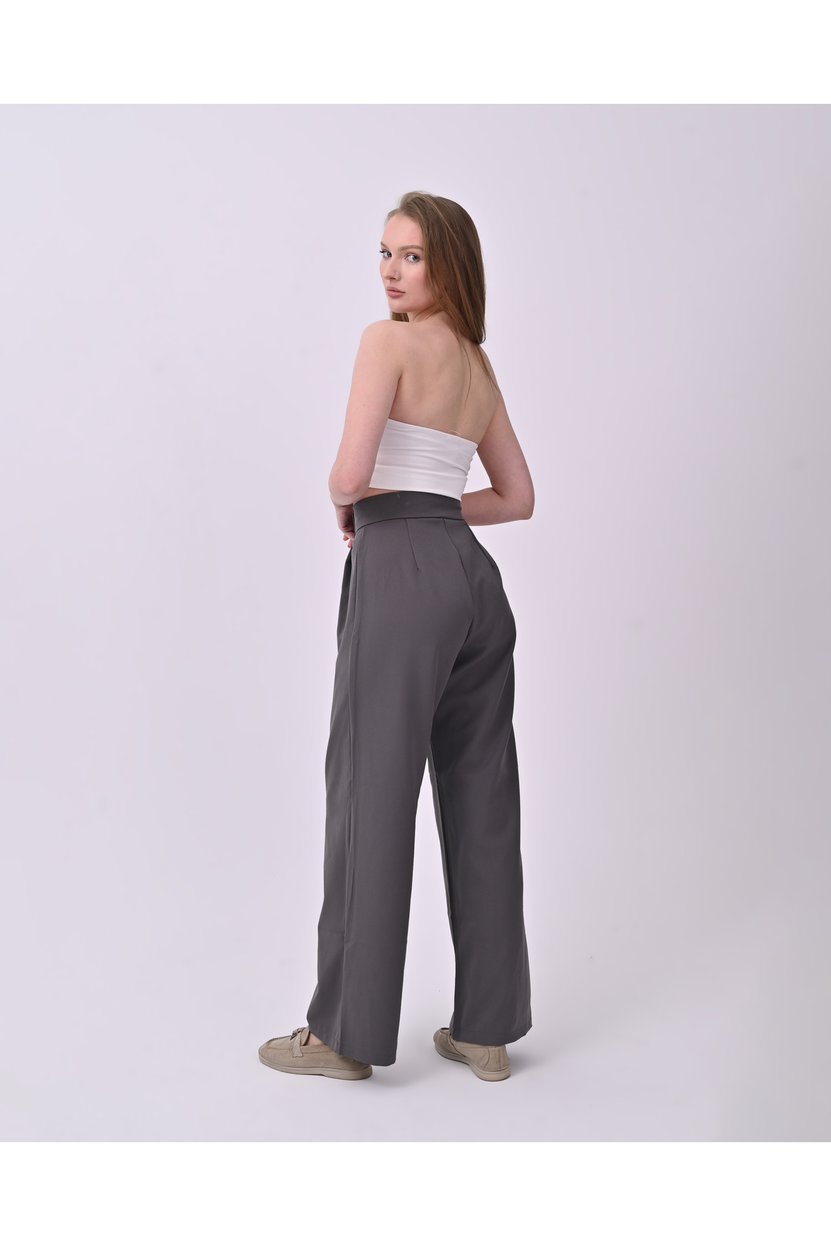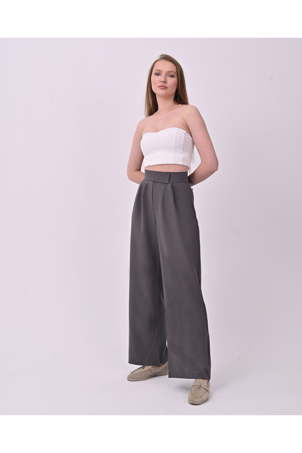Kadın Antrasit Yüksek Bel Cırtlı Palazzo Pantolon Kadın Antrasit Yüksek Bel Cırtlı Palazzo Pantolon PLL2308 46