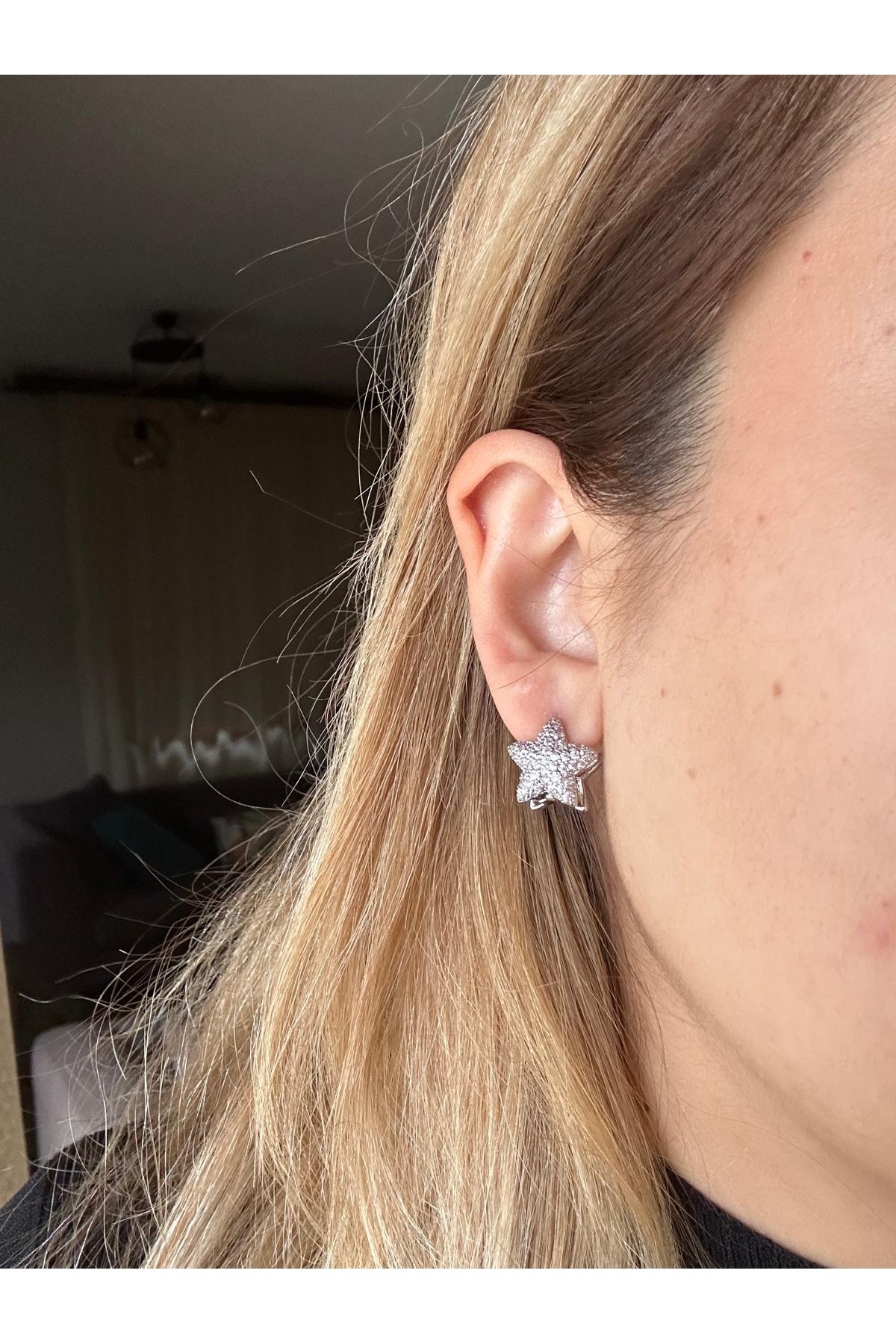 Özel Seri Çift Taraflı Zirkon Taşlı Yıldız Küpe Özel Seri Çift Taraflı Zirkon Taşlı Yıldız Küpe AJK050 تک سایز