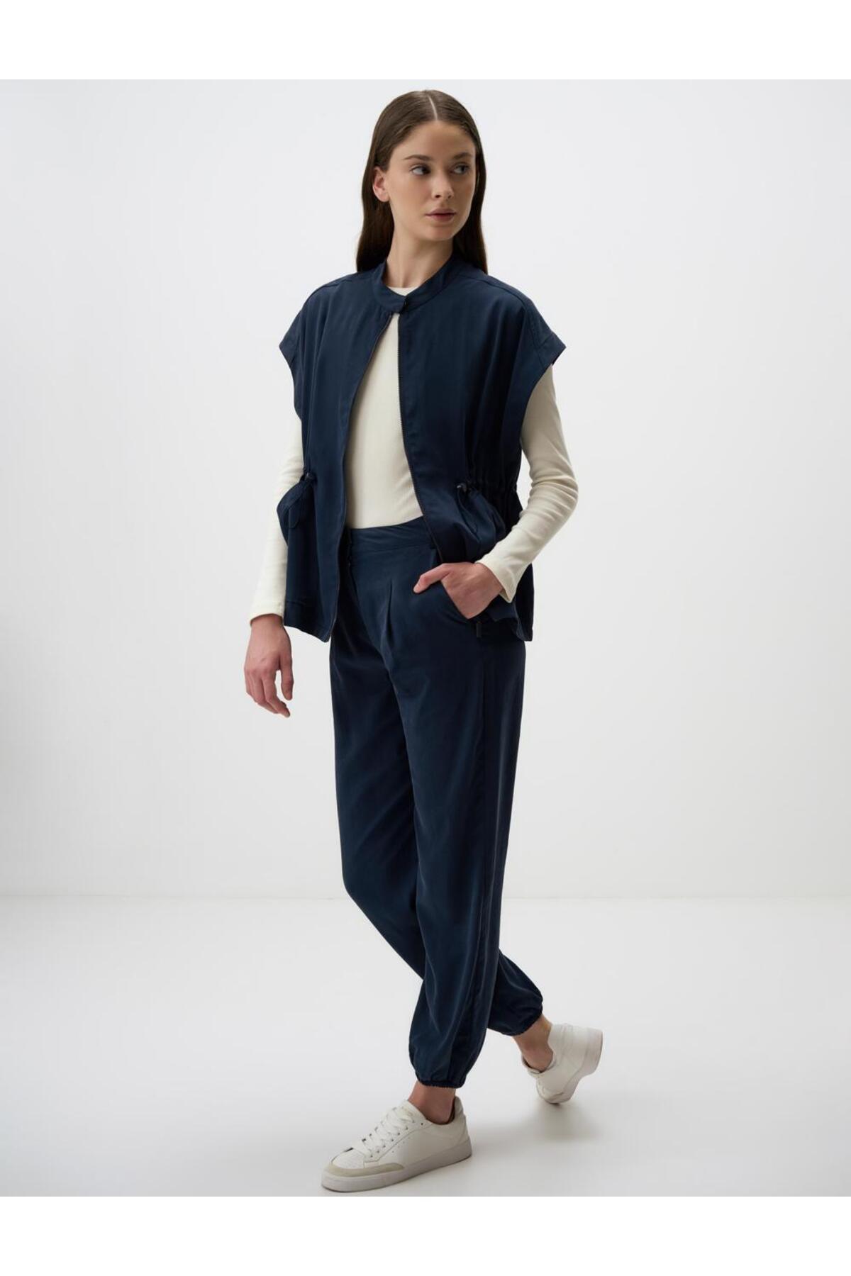 Siyah Beli Lastikli Dar Paça Cepli Pantolon Siyah Beli Lastikli Dar Paça Cepli Pantolon 4WW311529 L