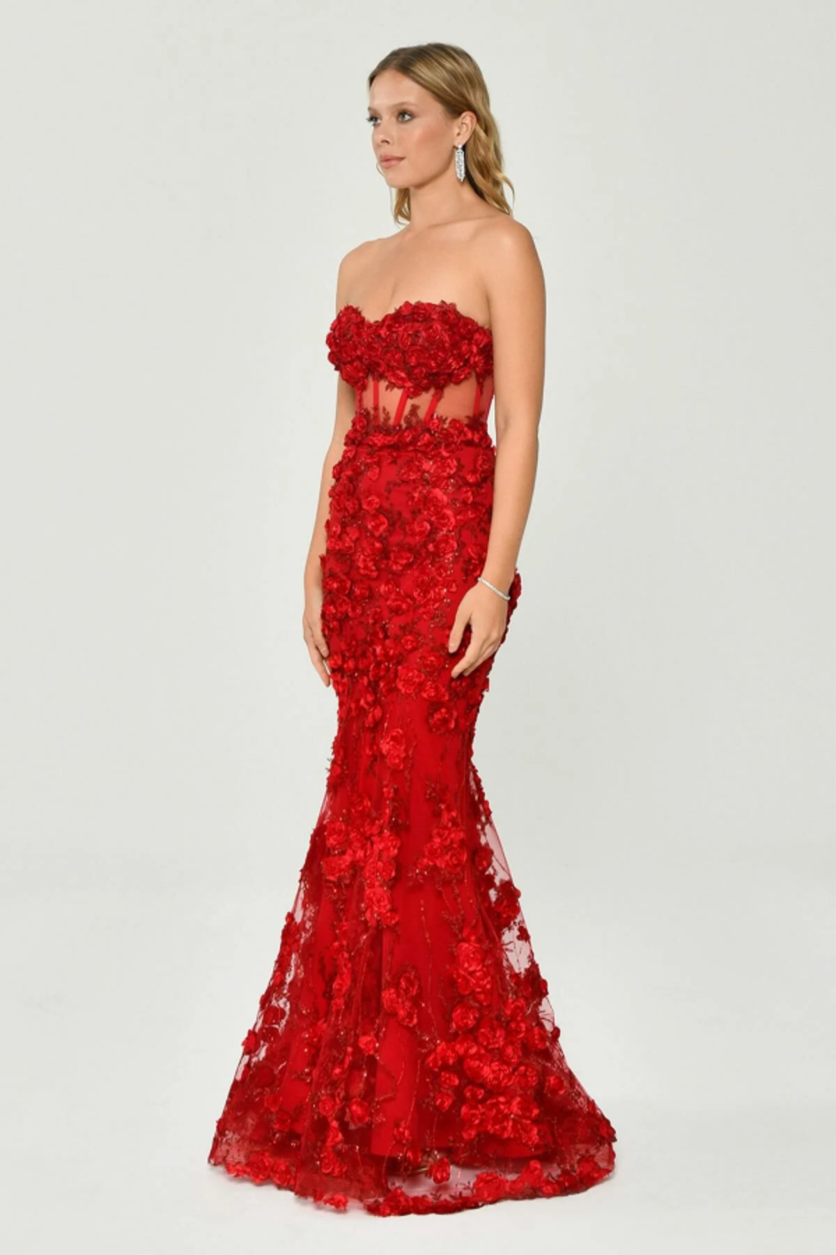 Straplez Kalp Yaka Beden Transparan Çiçek Detaylı Uzun Şık Abiye Elbise Straplez Kalp Yaka Beden Transparan Çiçek Detaylı Uzun Şık Abiye Elbise 4841 48
