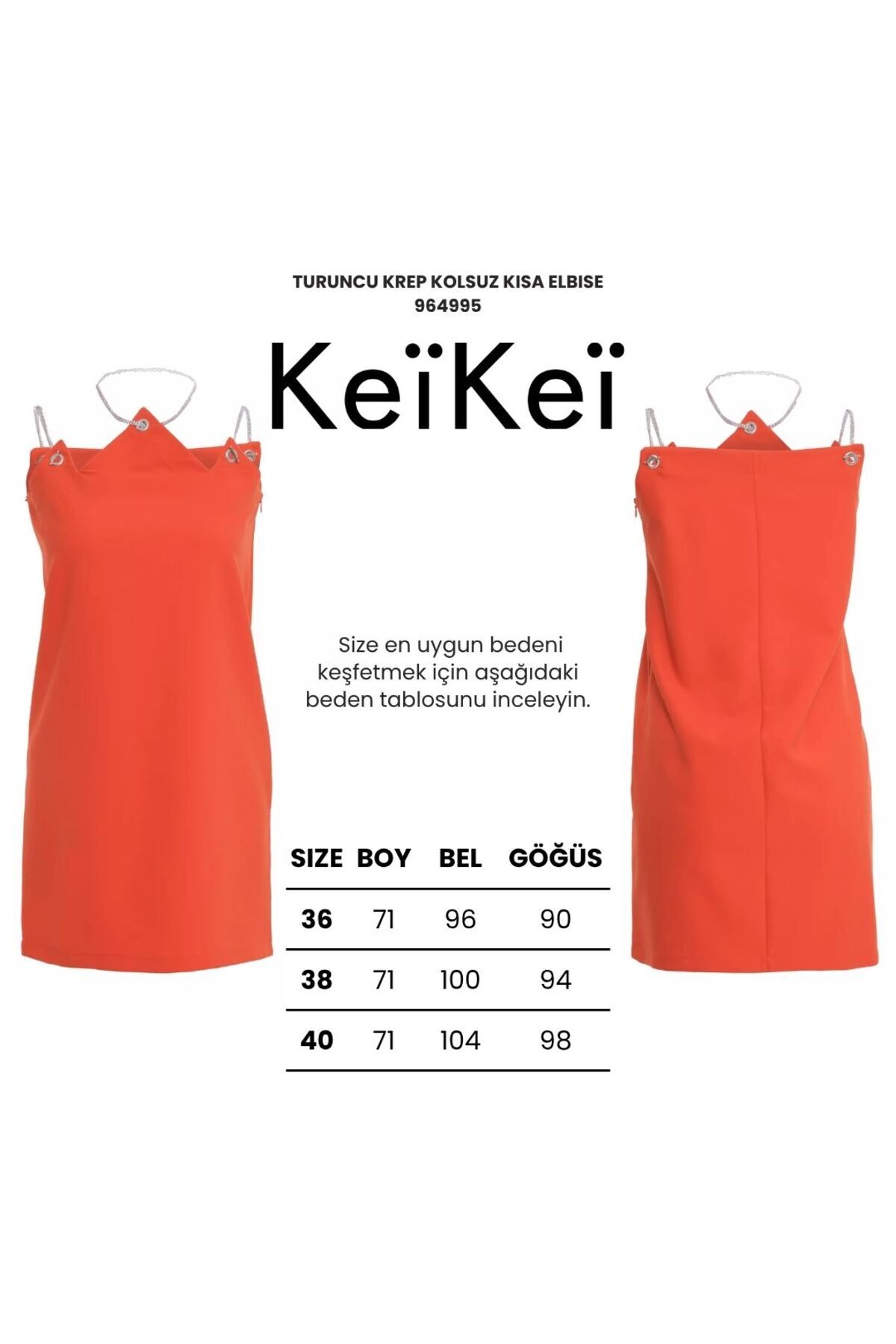 Turuncu krep kolsuz kısa elbise Turuncu krep kolsuz kısa elbise 964995-090 40