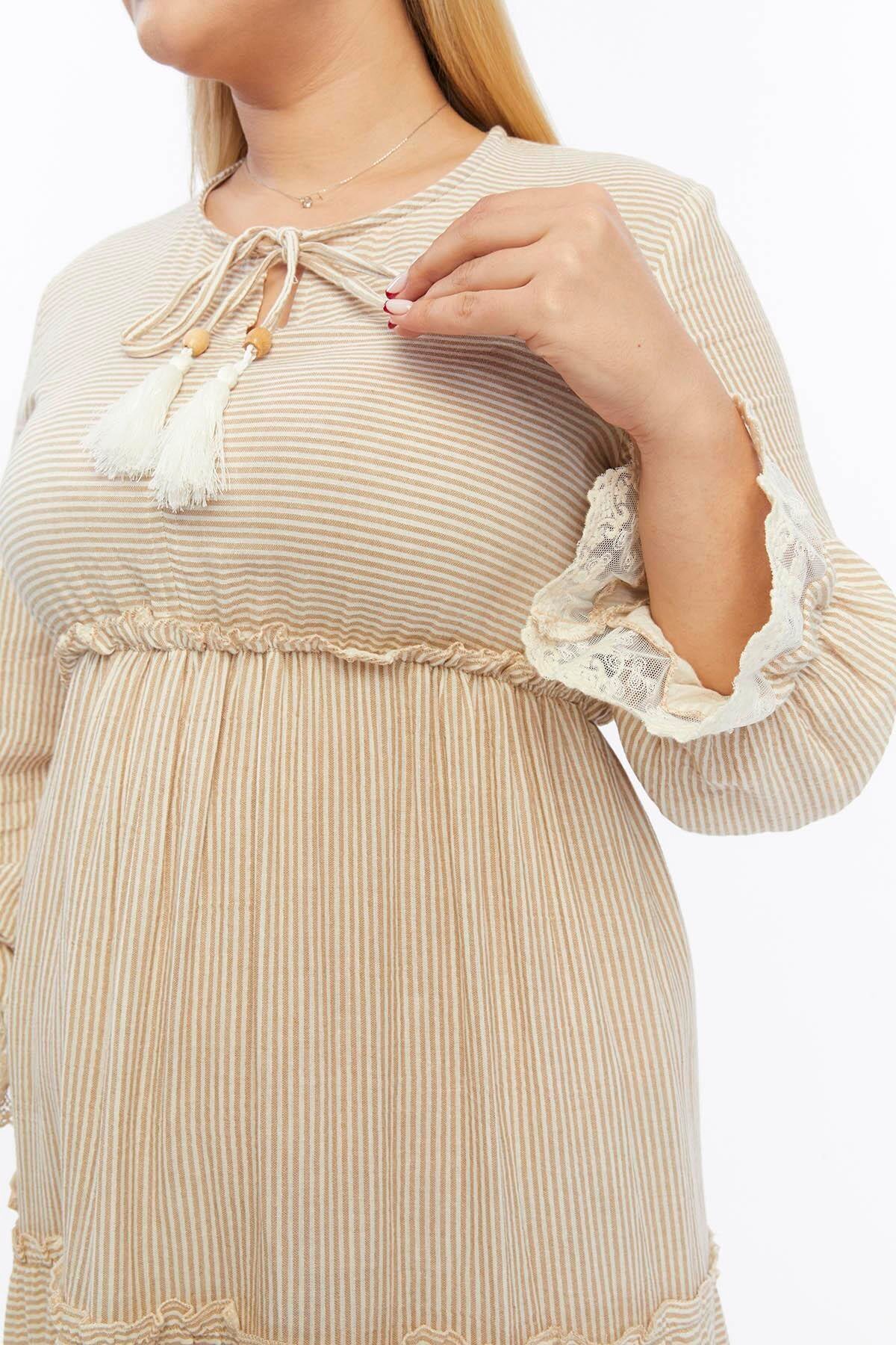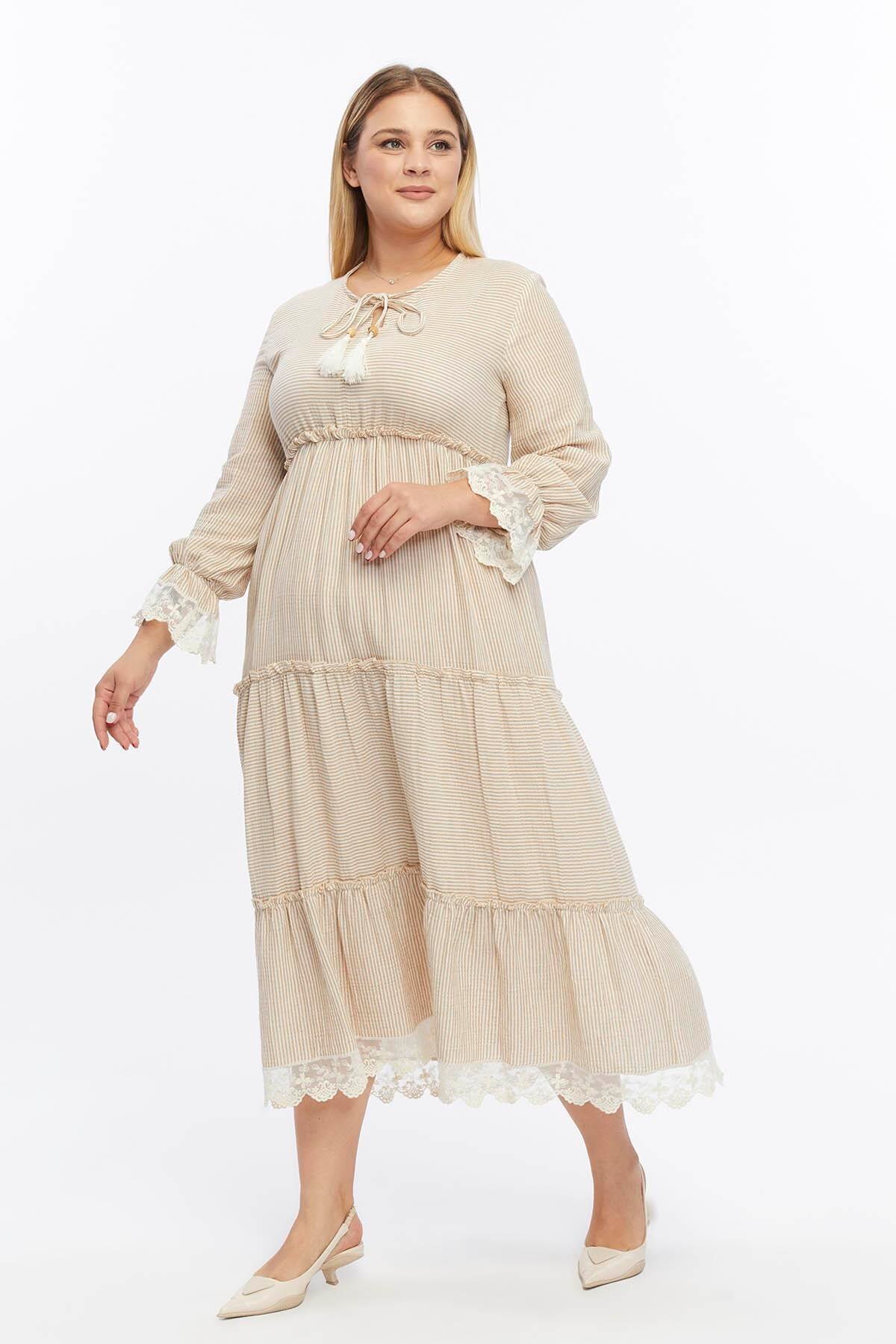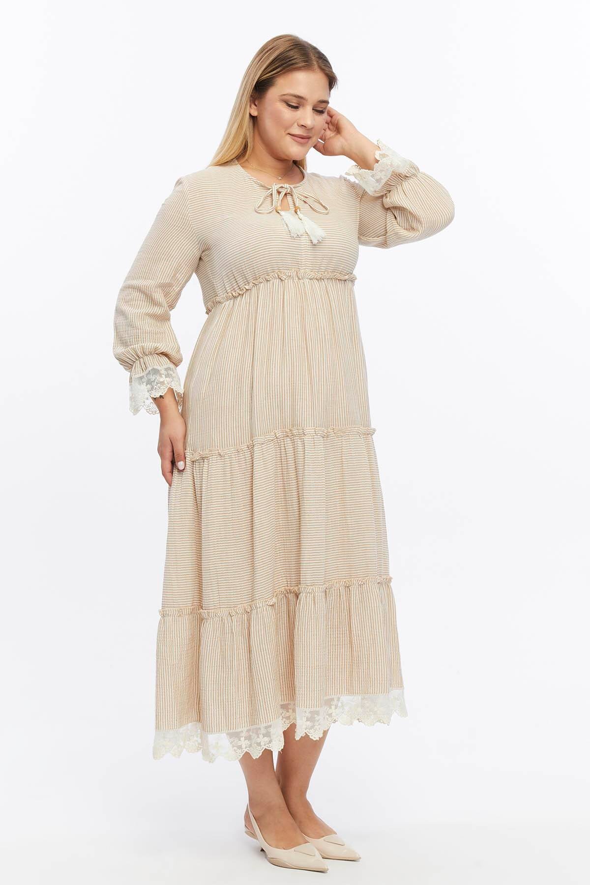 Çizgili Müslin Dantel Detaylı Elbise Bej Çizgili Müslin Dantel Detaylı Elbise Bej EL2125 4