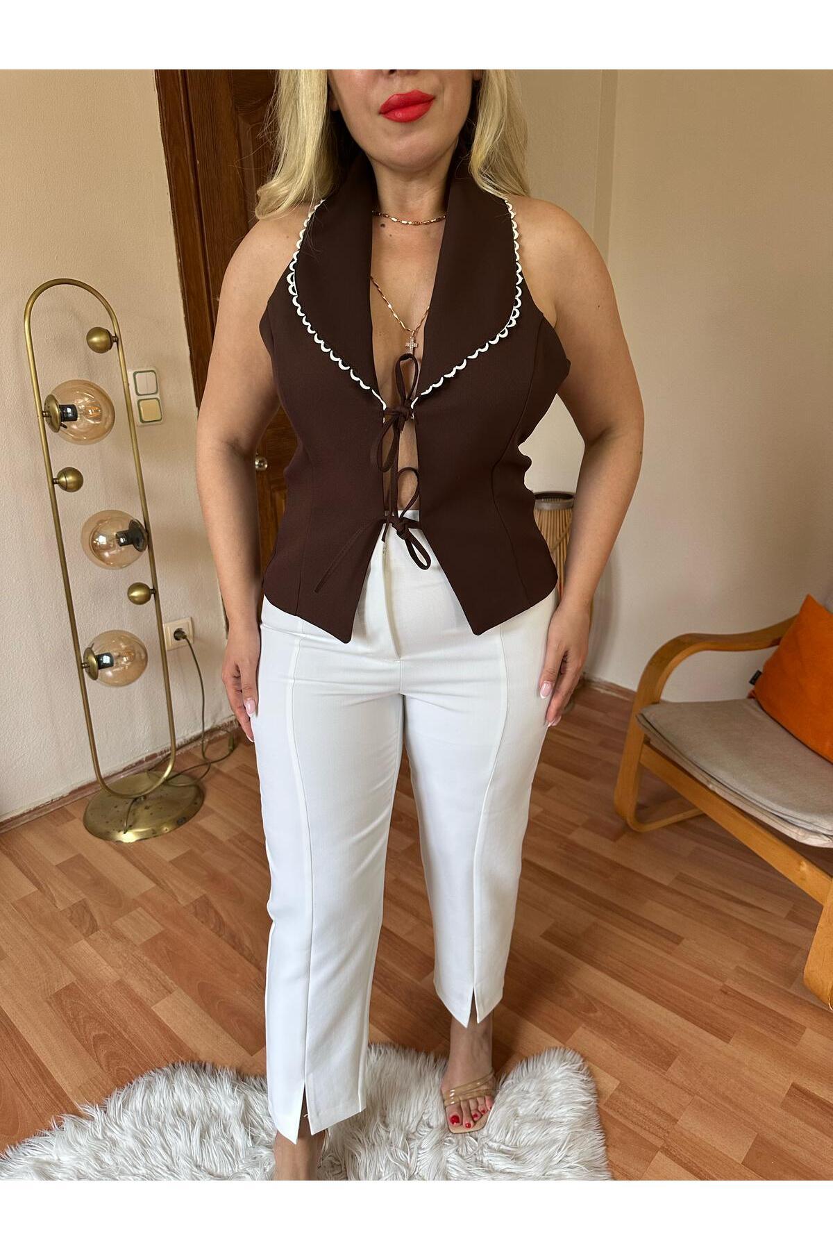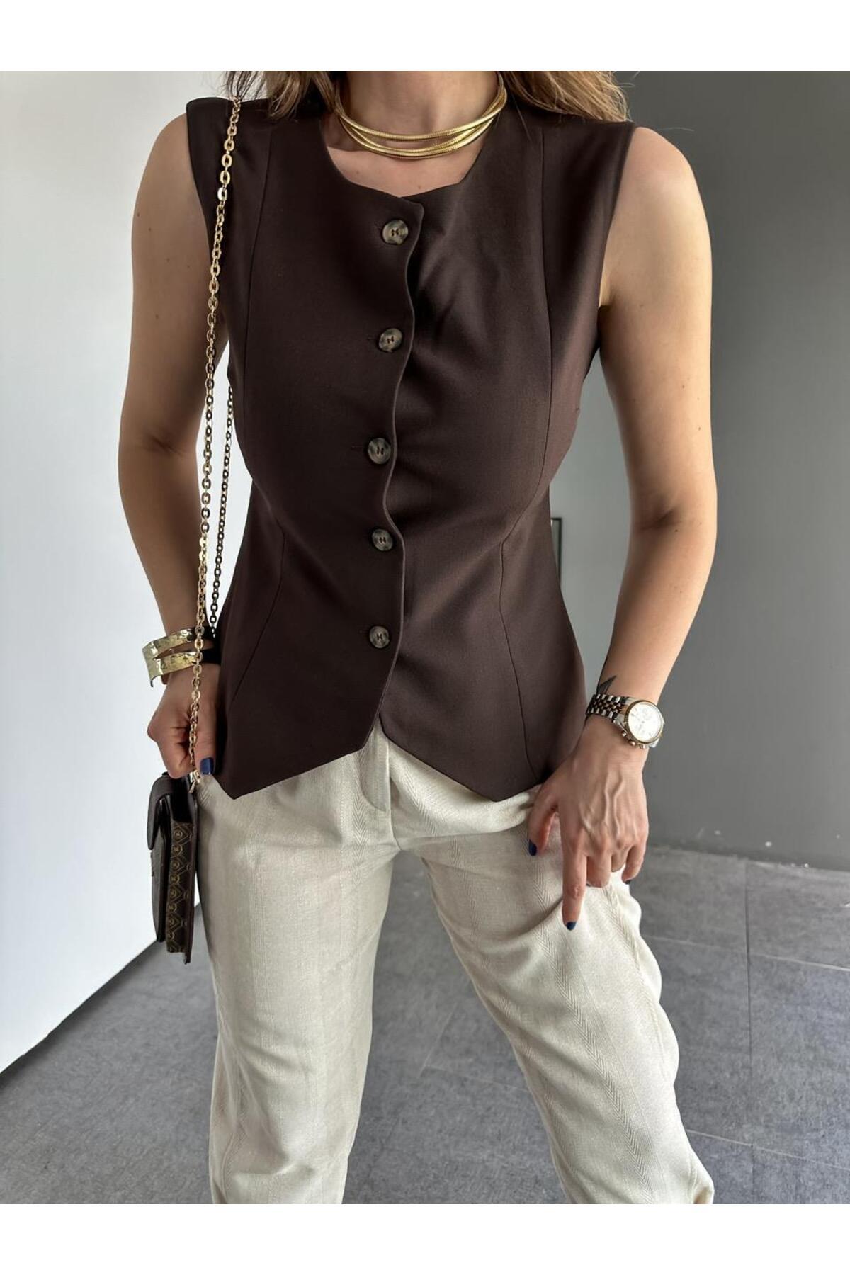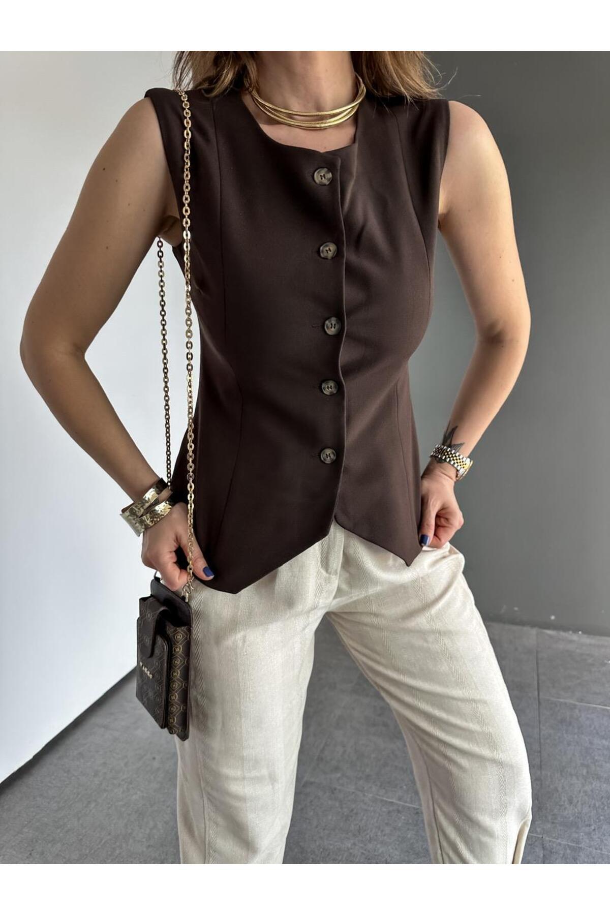 Kahve Asimetrik Premium Yelek Kahve Asimetrik Premium Yelek 157 L