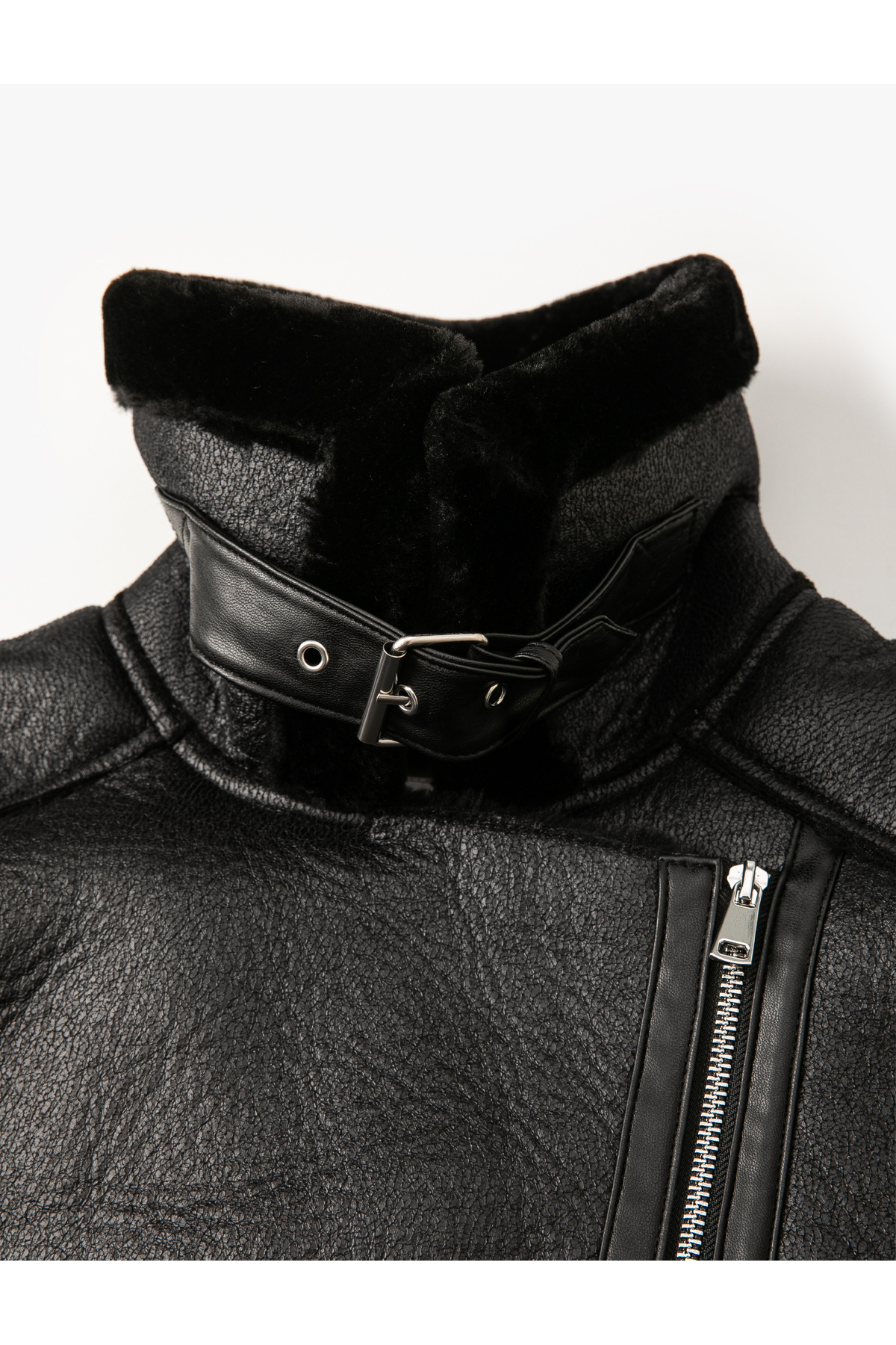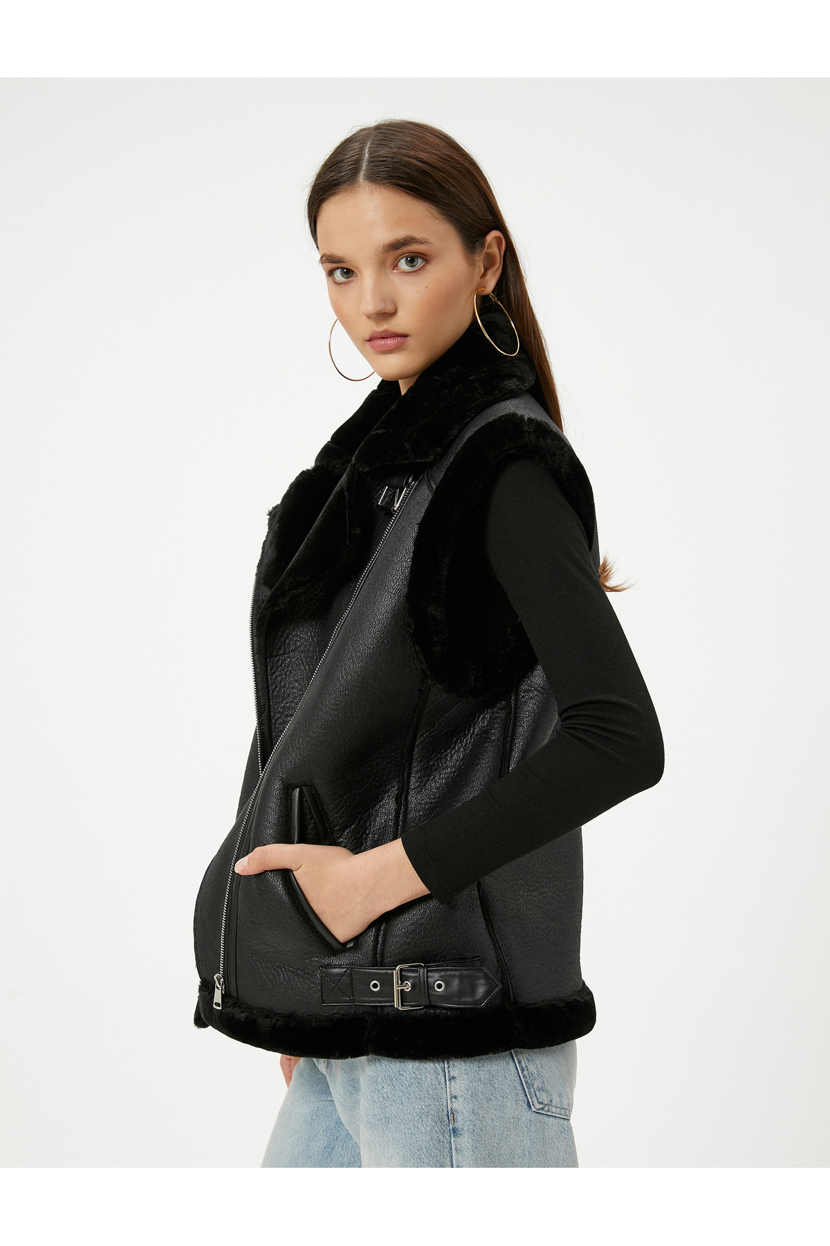 Suni Deri Uzun Biker Yelek Yakası Kürklü Fermuarlı Cepli Suni Deri Uzun Biker Yelek Yakası Kürklü Fermuarlı Cepli 5WAL20009IW 42