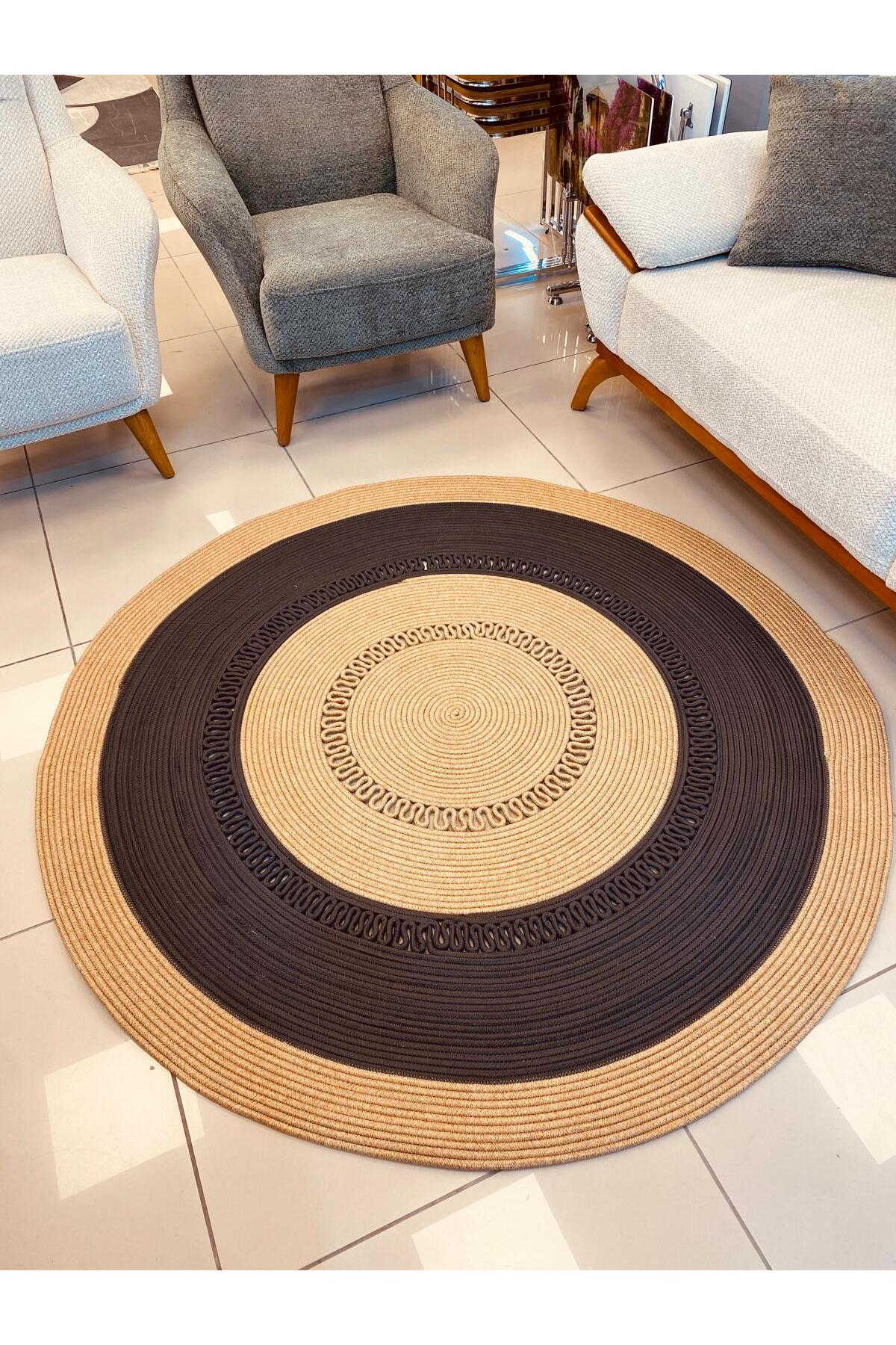 Hasır Jüt Halı El Örgüsü Halı Kilim Yıkanabilir Çift Taraflı Yuvarlak Hasır Jüt Halı El Örgüsü Halı Kilim Yıkanabilir Çift Taraflı Yuvarlak BDZ7406 160 x 160