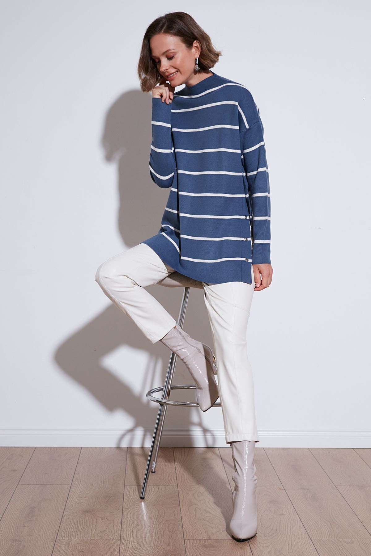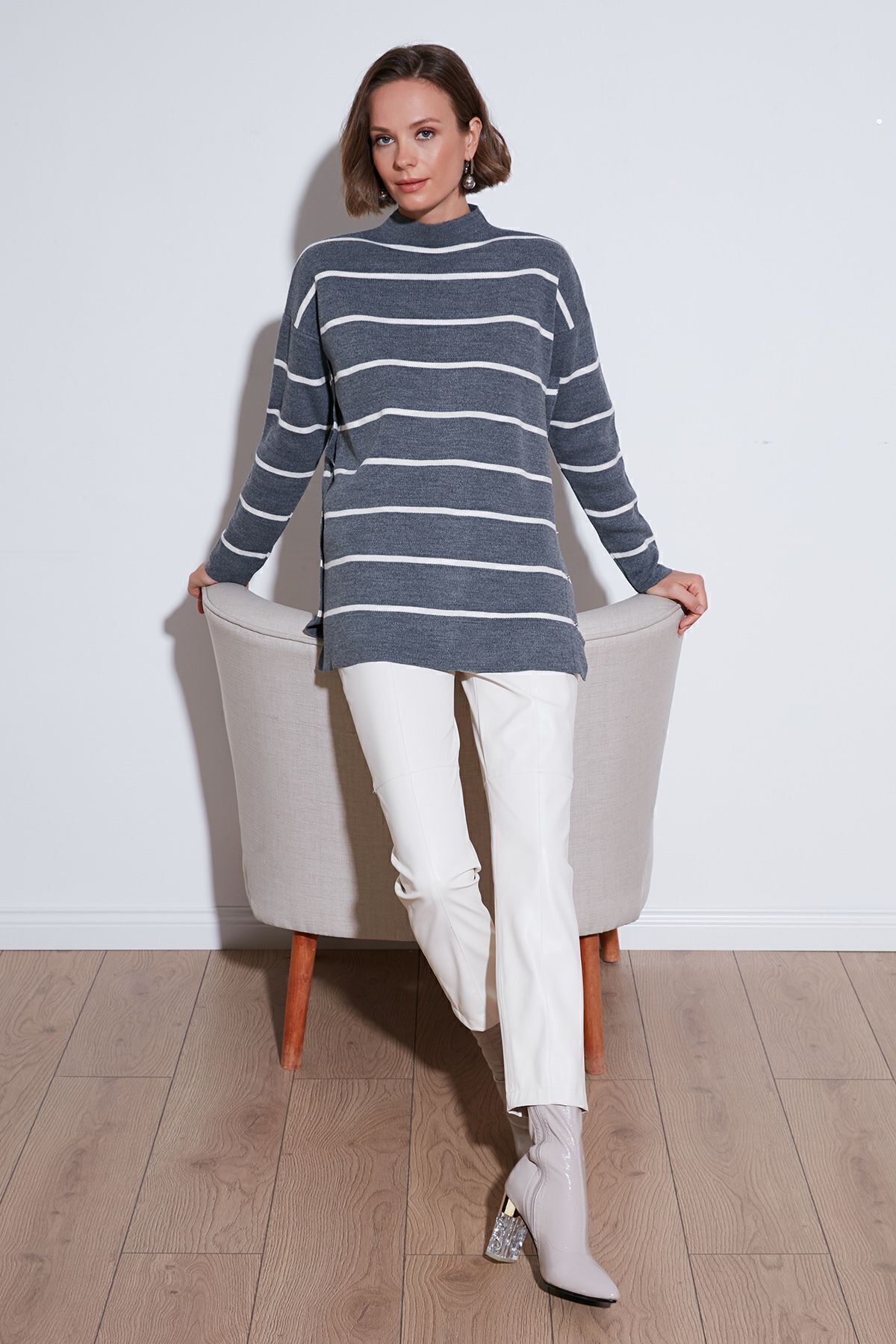 Çizgili Dik Yaka Onesize Triko Kazak Kazak 4615197y Çizgili Dik Yaka Onesize Triko Kazak Kazak 4615197y 4615197Y Standart